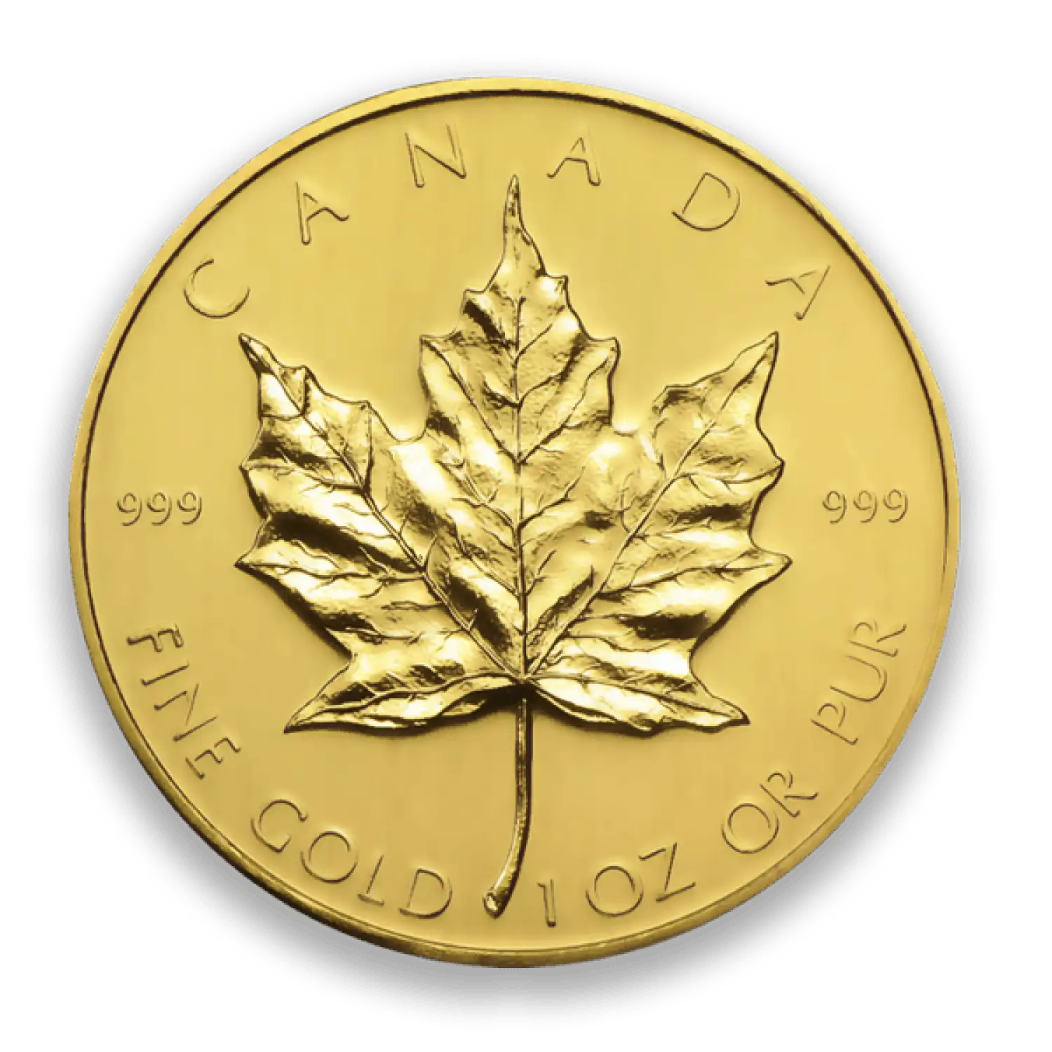 Expand your collection of bullion coins by buying the beautiful 1 oz Canadian Gold Maple Leaf - 999 (1979-82) online from us. The gold price is updated on our website every minute.