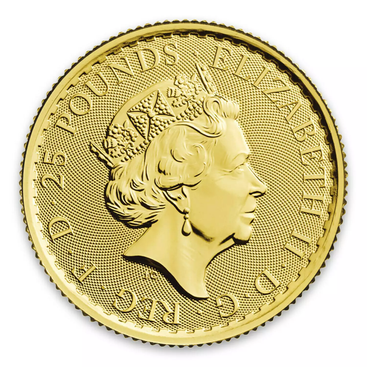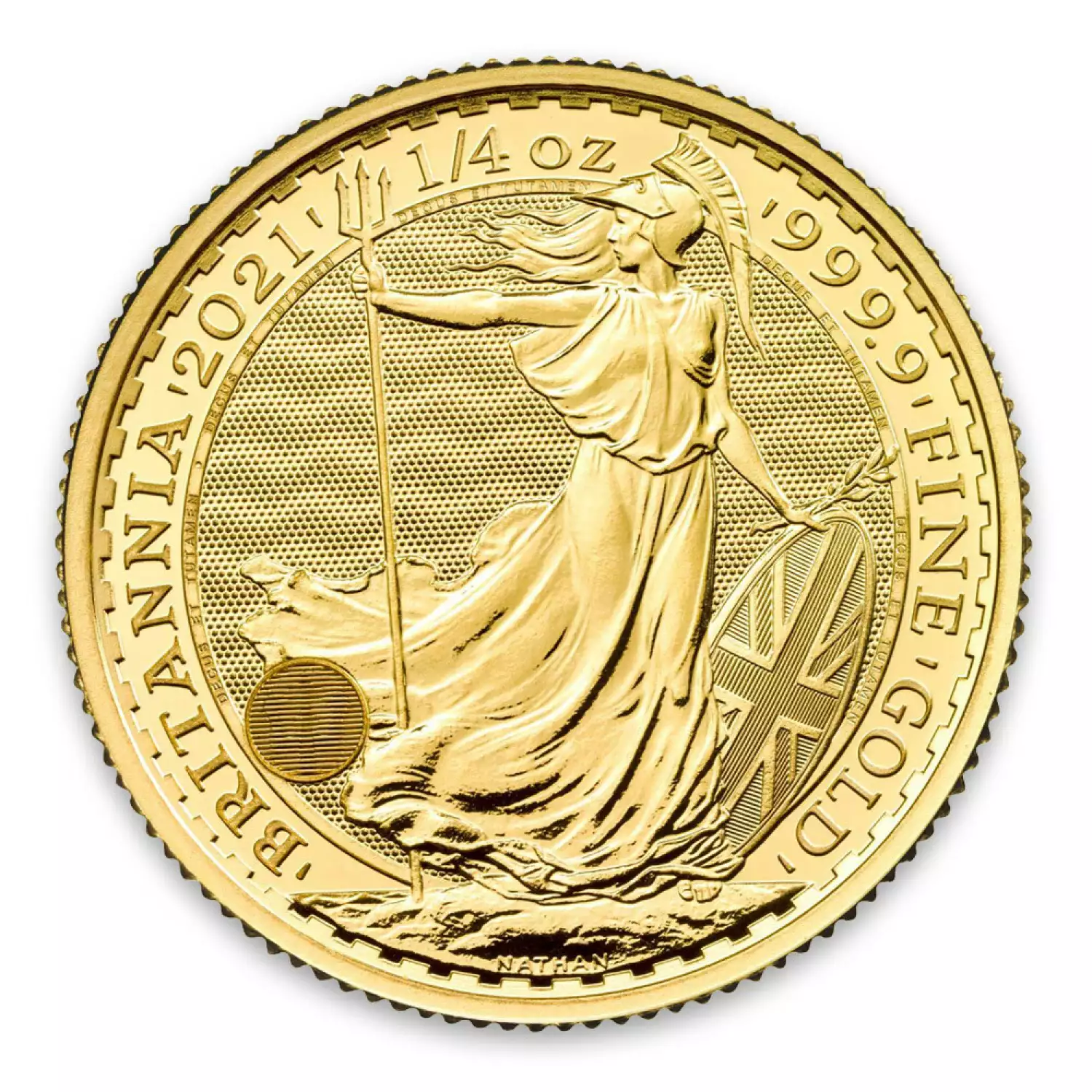 The British Gold Britannia continues to provide beauty and reliability. The 2021 1/4oz British Gold Britannia is one of the most popular investment coins in the world. Each 2021 1/4oz British Gold Britannia contains 0.25 troy ounce of .9999 fine gold. The reverse, designed by Philip Nathan has never changed since the first Britannia bullion coin in 1987. The Britannia has been a symbol through out the history and it’s first appeareance on the Roman coins is dating back over 2000 years ago.