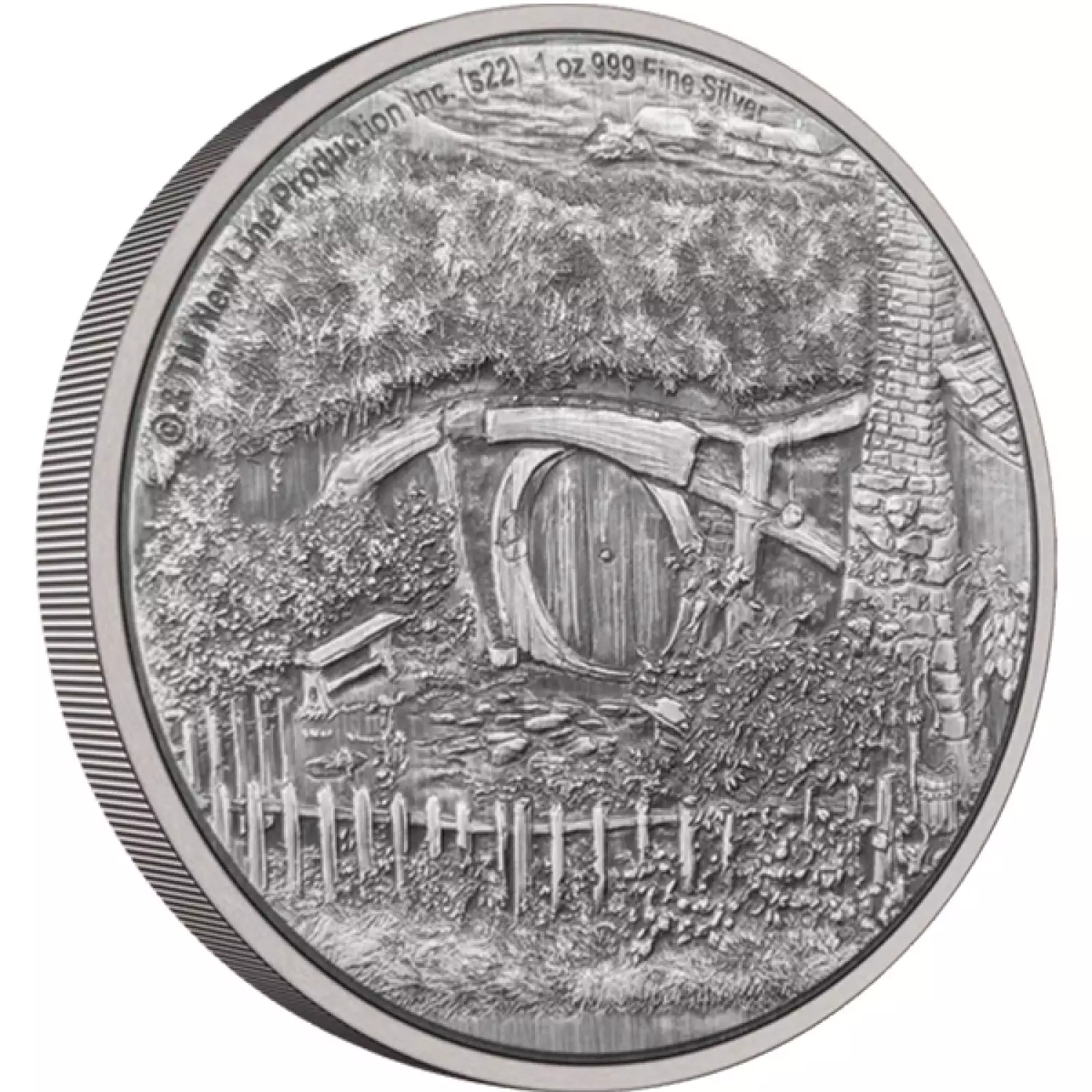 With a limited production of only 3,000, this fully engraved 1oz silver coin features a hobbit-hole in the beautiful Shire, from THE LORD OF THE RINGS™. An antique finish completes this delightful design.
