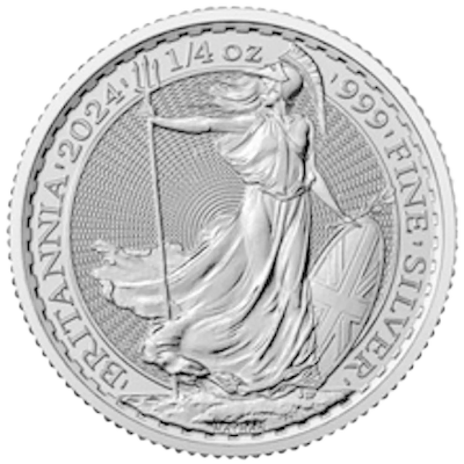 the 2024 quarter-ounce Silver Britannia coin contains 7.78 grams of pure silver with a purity of 999 parts per thousand. It is directly sourced from the Royal Mint's refinery in Llantrisant, Wales, making it an excellent choice for silver investors seeking small denomination coins.