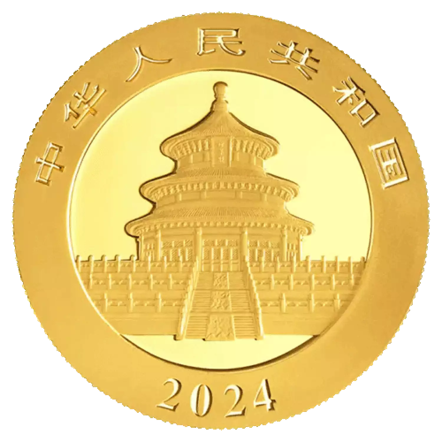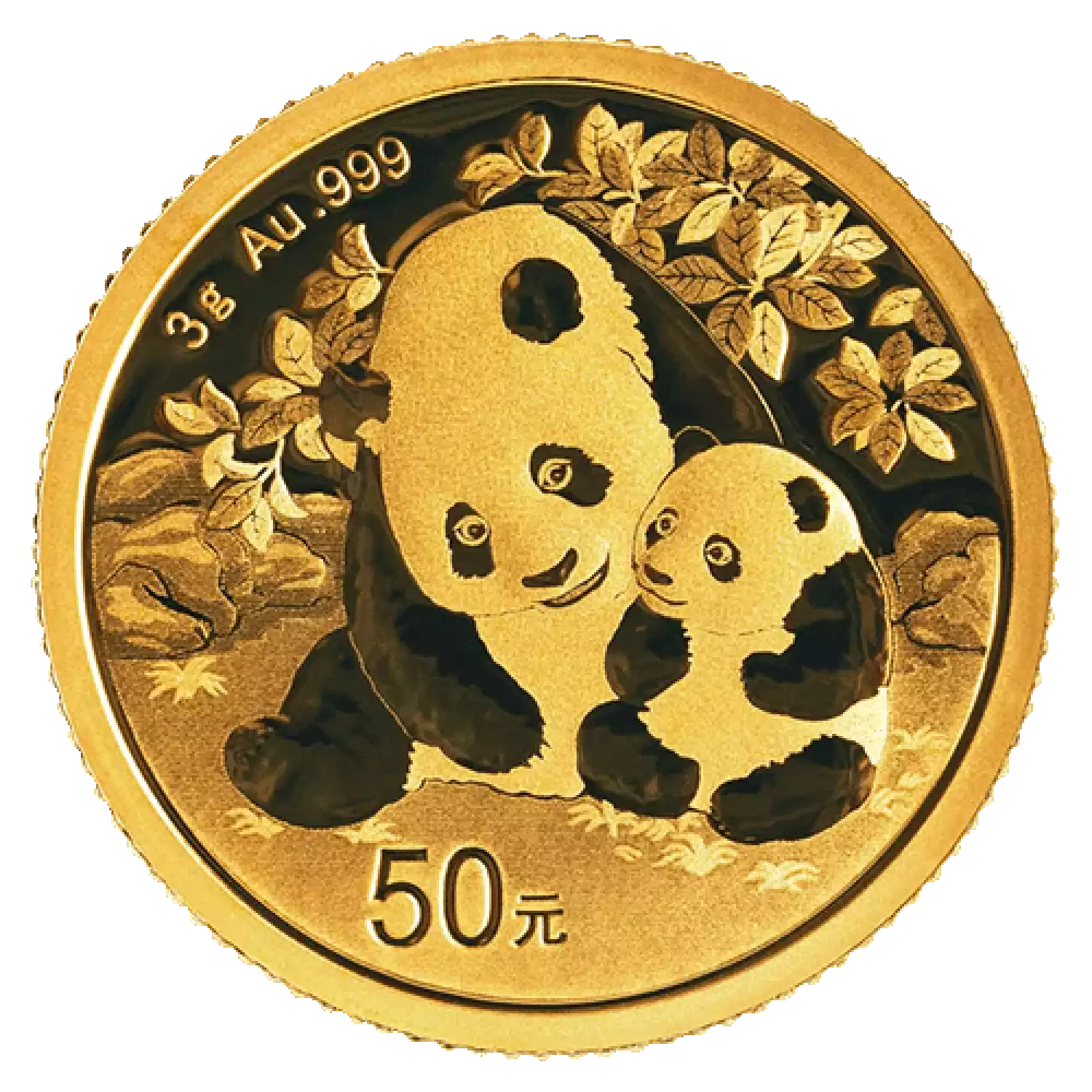 The 2024 3g Chinese Gold Panda coin is minted as .999 fine gold, 24 karat. The Chinese Gold Panda Coins differ from most other common gold bullion in two ways. First, the reverse design of the endangered panda bear changes annually (except for 2001 and 2002 which feature the same design) and second, each coin is minted as a limited edition. First minted in 1982, the Chinese Gold Panda Bullion Coin was greeted with great interest among collectors. This interest peaked in 1987 after which lower mint figures resulted in limited availability. The design of the Panda changes each year.