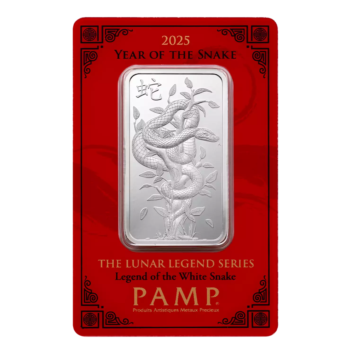 In addition to its aesthetic appeal, the 2025 1oz PAMP Suisse Silver Bar - Year of the Snake offers several benefits for investors and collectors alike. As a 1oz silver bar, it is an affordable and accessible way to invest in precious metals, while its IRA eligibility makes it an attractive option for those looking to diversify their retirement portfolios.
