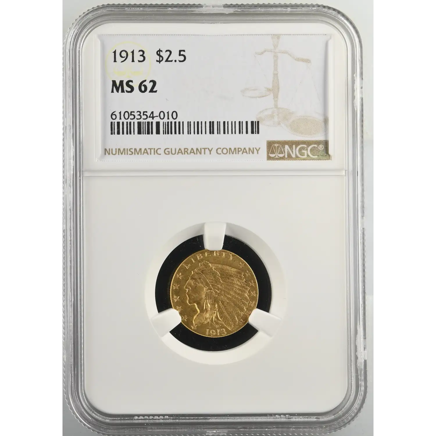 1913 Gold Quarter Eagles $2 1/2 Indian Head NGC MS-62