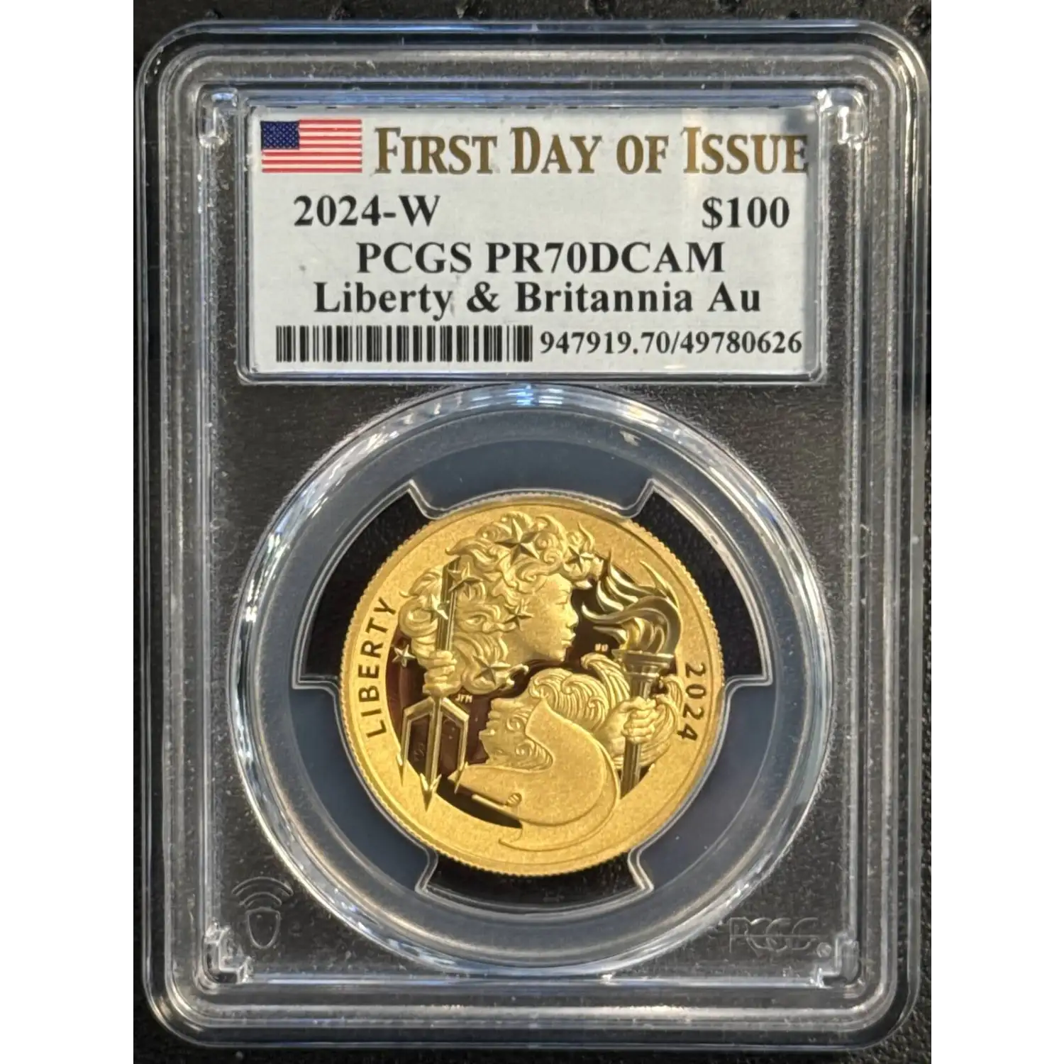 2024-W American Liberty Gold PCGS PR-70 DCAM Liberty & Britannia Au First Day of Issue