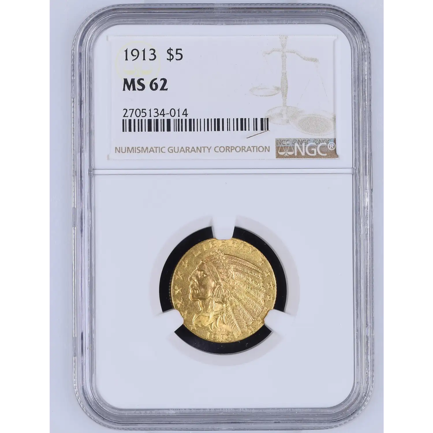 1913 Gold Half Eagles $5 Indian Head NGC MS-62
