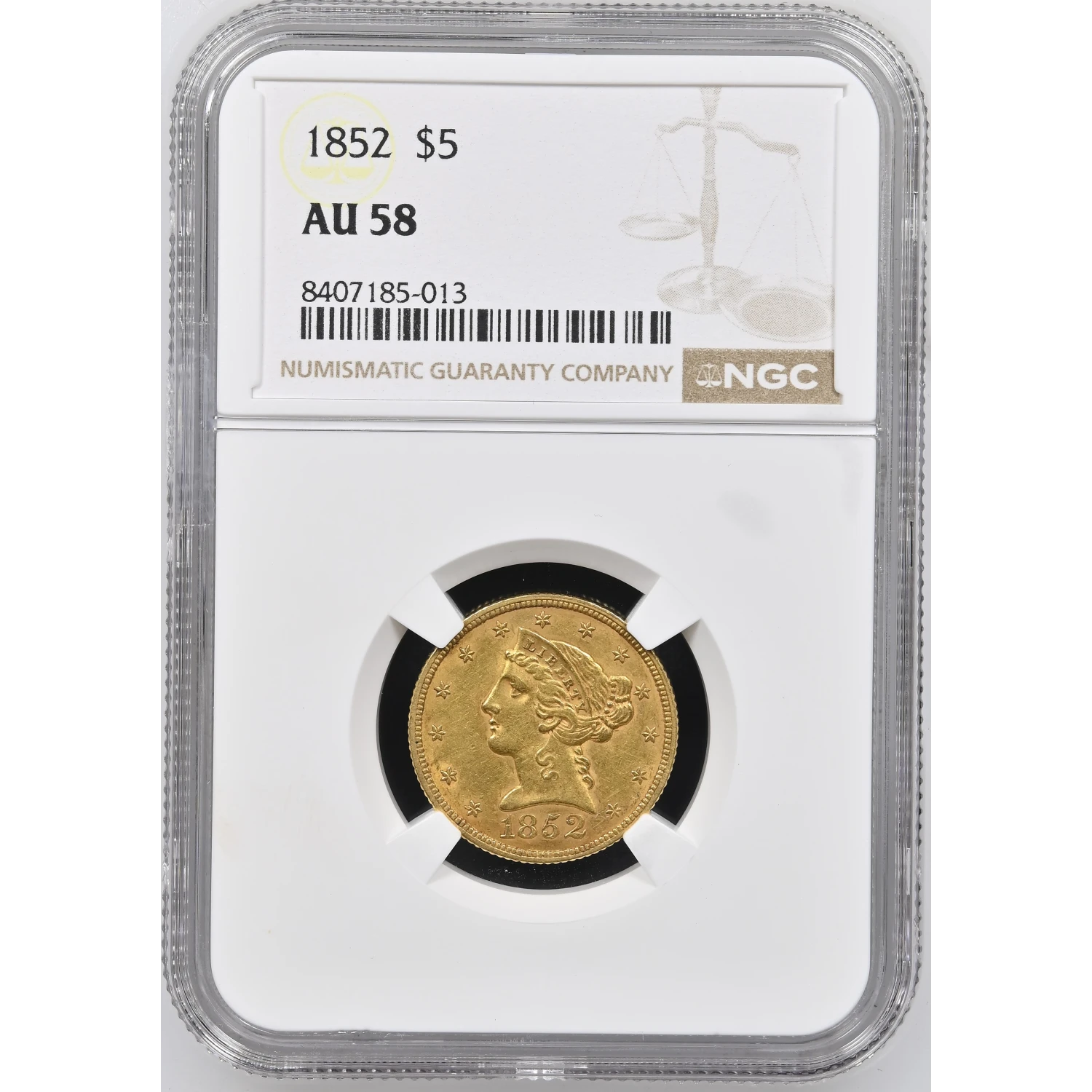 1852 Gold Half Eagles Liberty Head NGC AU-58