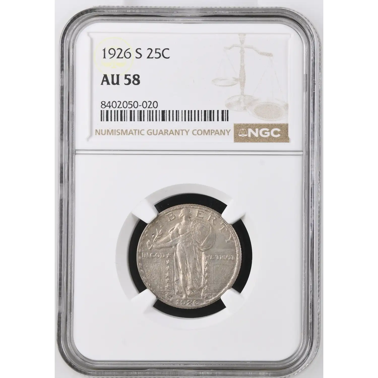 1926-S Quarter Dollars Standing Liberty Quarter NGC AU-58