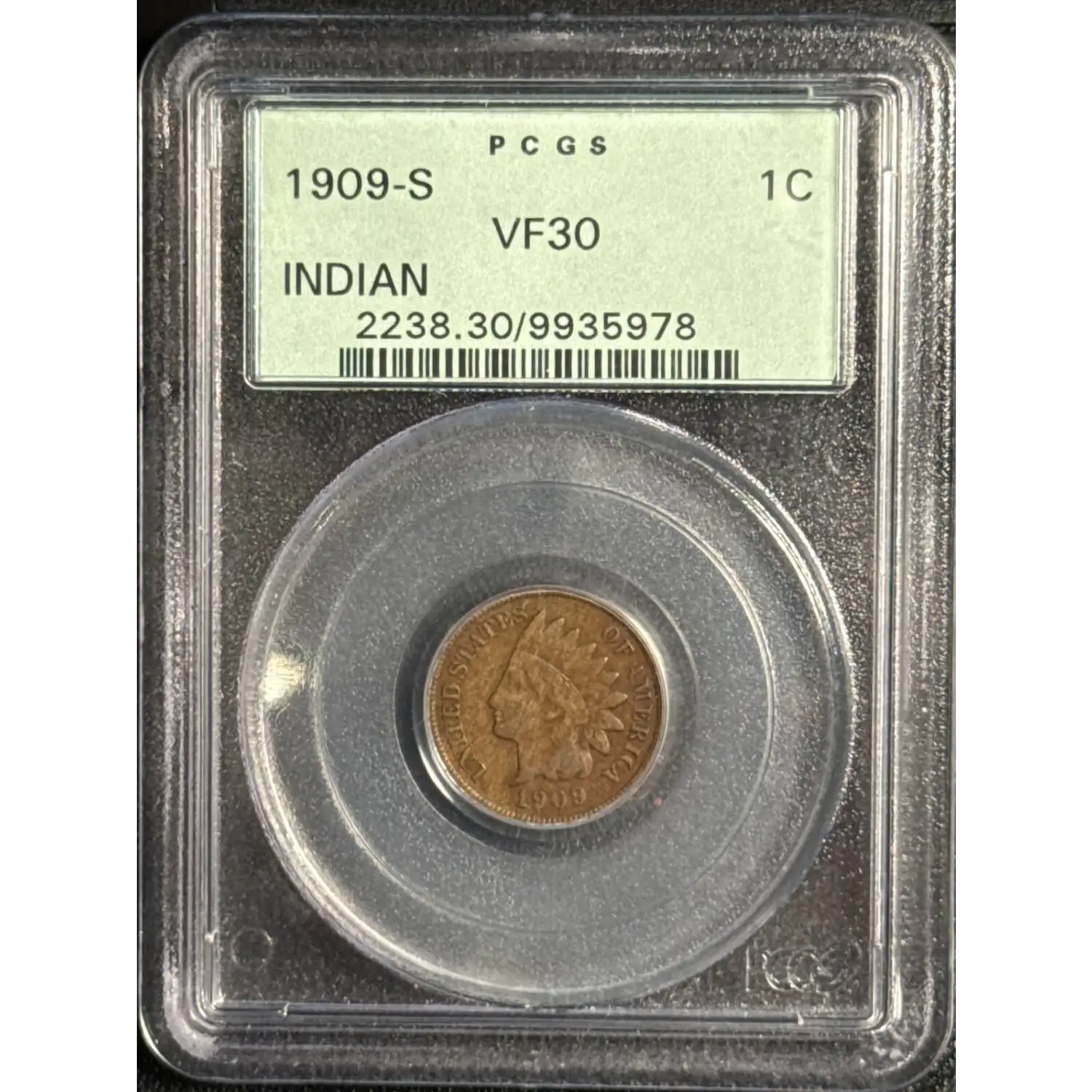 1909-S Indian Cent PCGS VF-30 BN OGH Indian