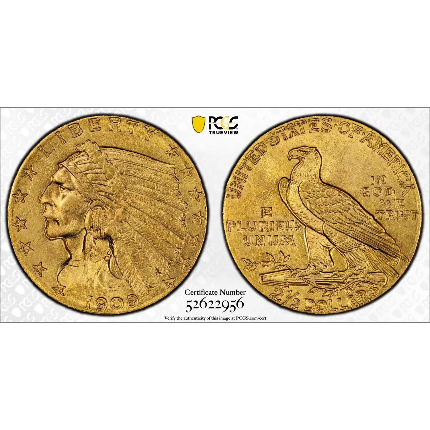 1909 Gold Quarter Eagles $2 1/2 Indian Head PCGS MS-64 CAC