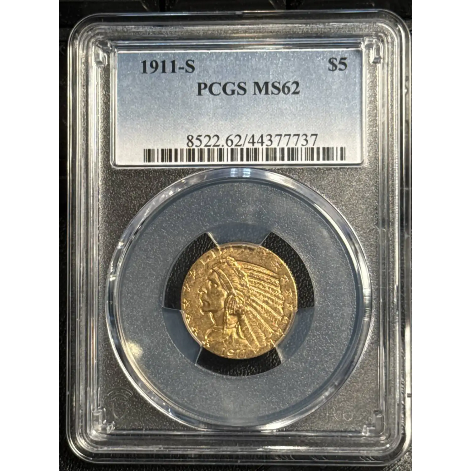 1911-S Gold Half Eagles $5 Indian Head PCGS MS-62