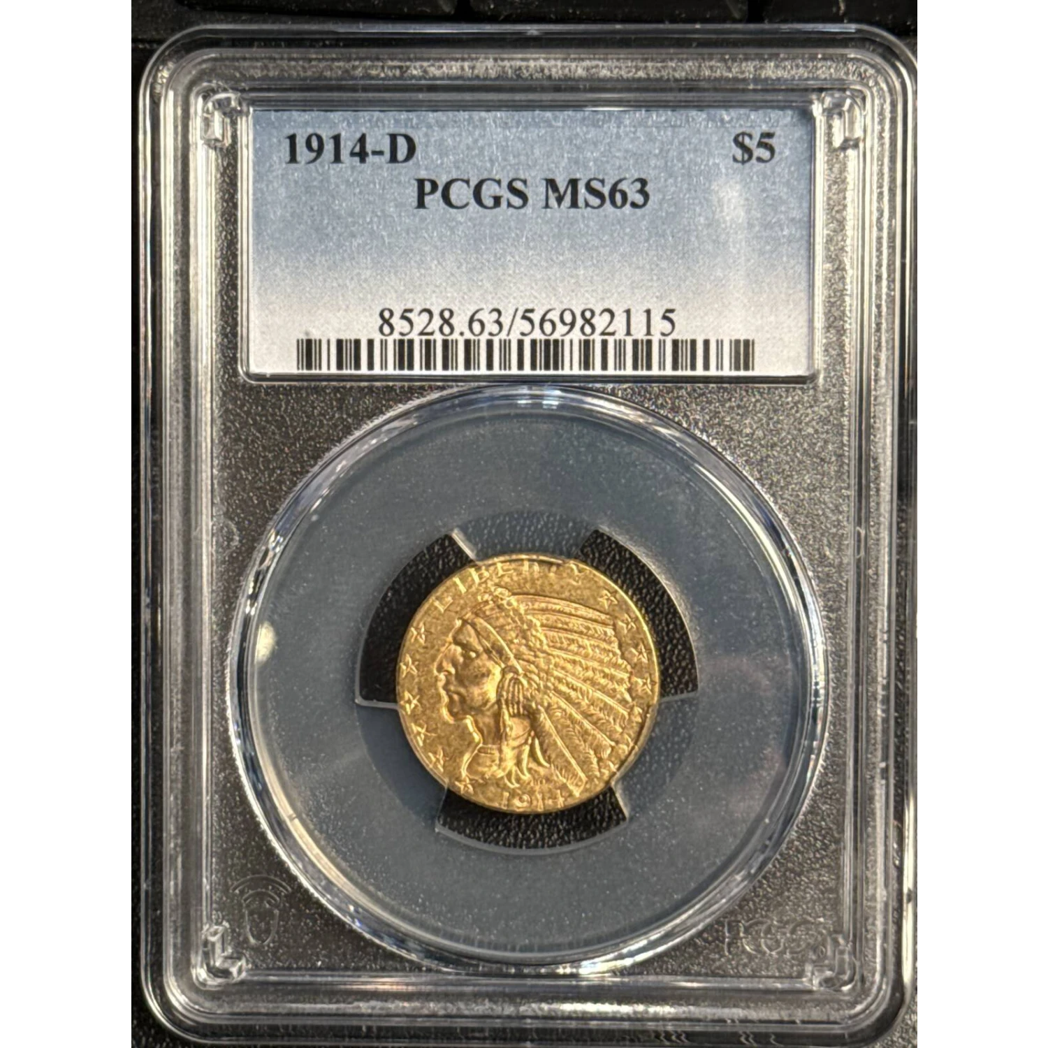 1914-D Gold Half Eagles $5 Indian Head PCGS MS-63