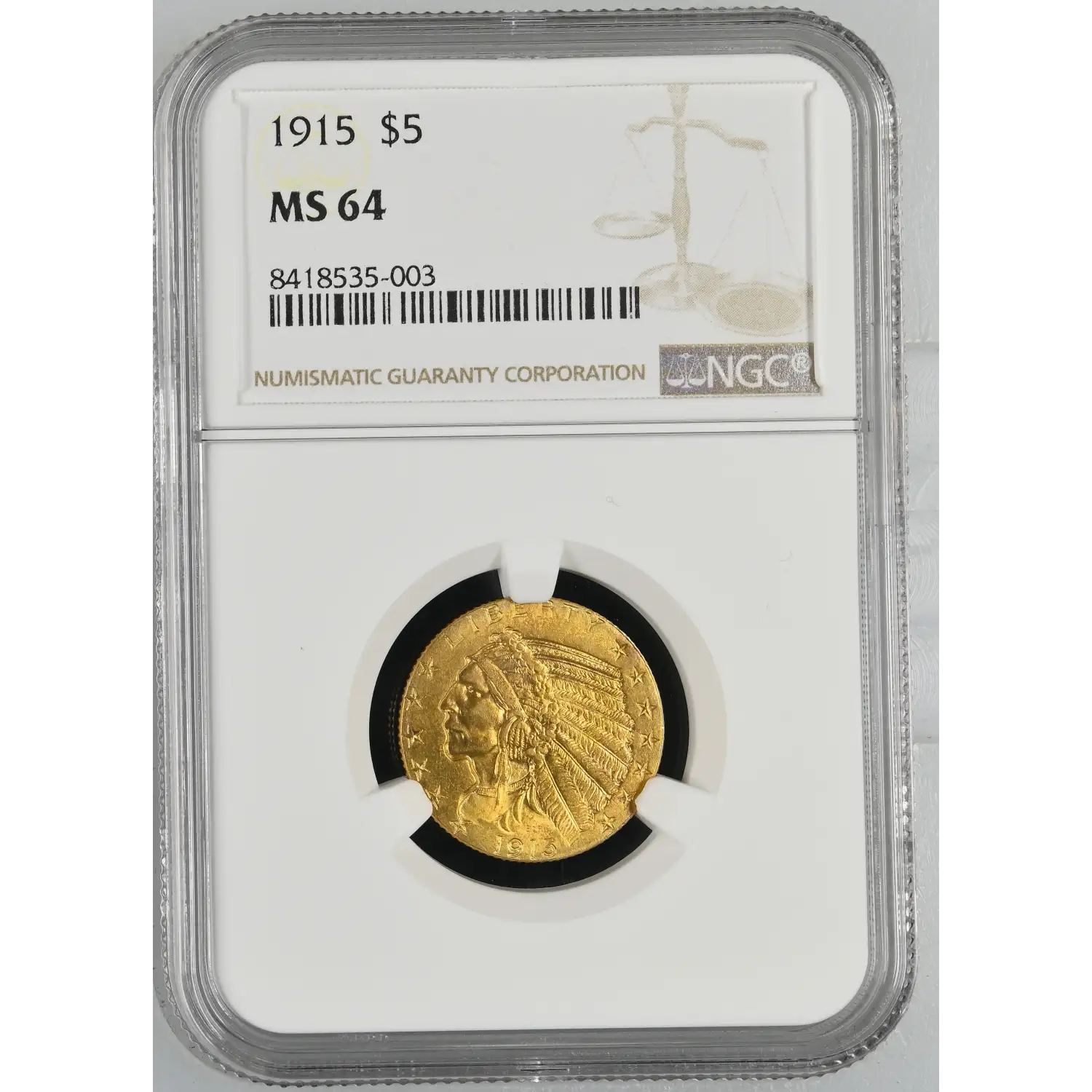 1915 Gold Half Eagles $5 Indian Head NGC MS-64