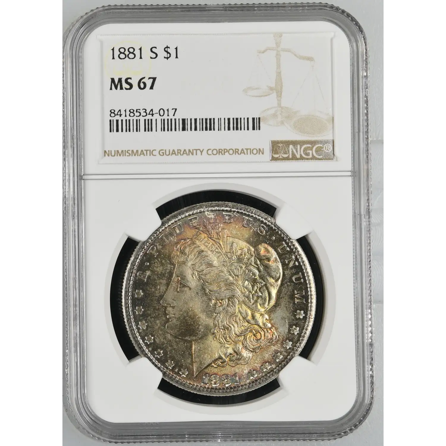 1881-S Morgan Silver Dollar NGC MS-67 RAINBOW TONING CAC