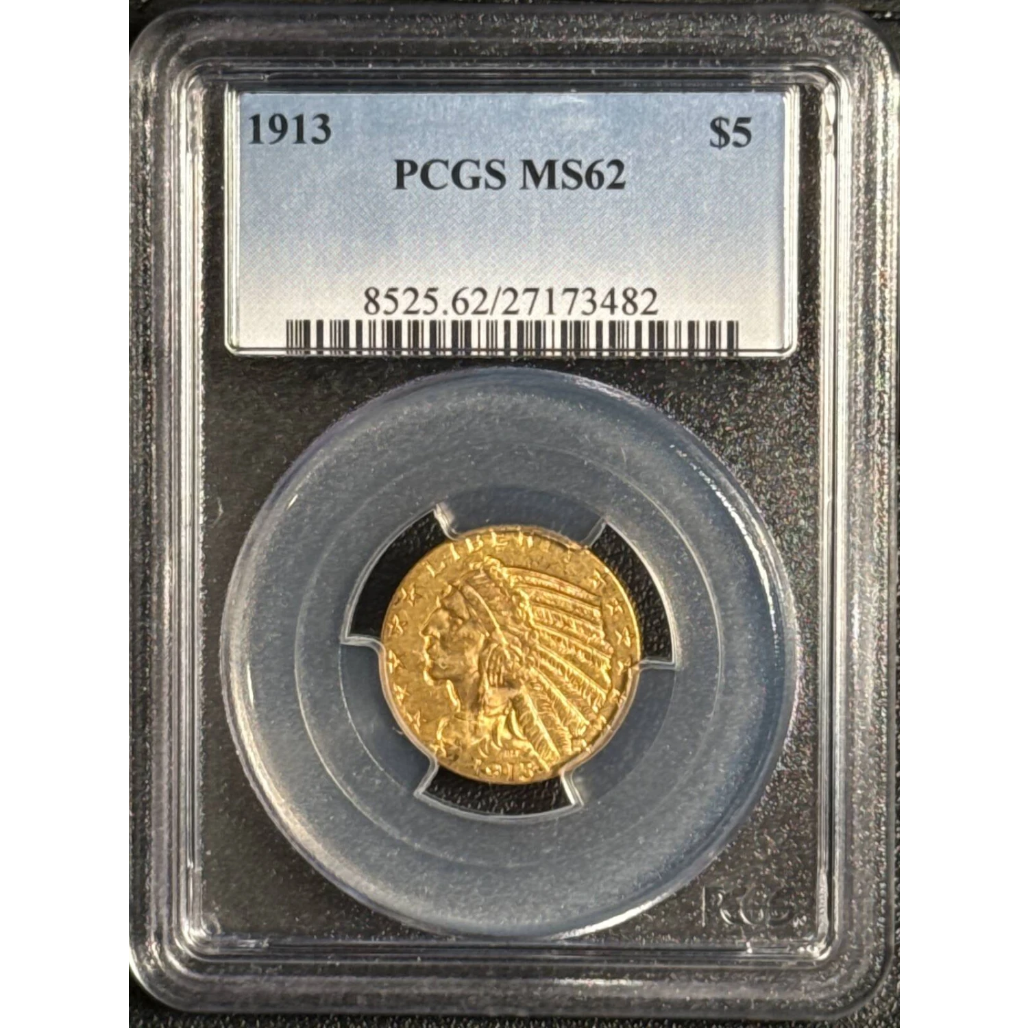 1913 Gold Half Eagles $5 Indian Head PCGS MS-62
