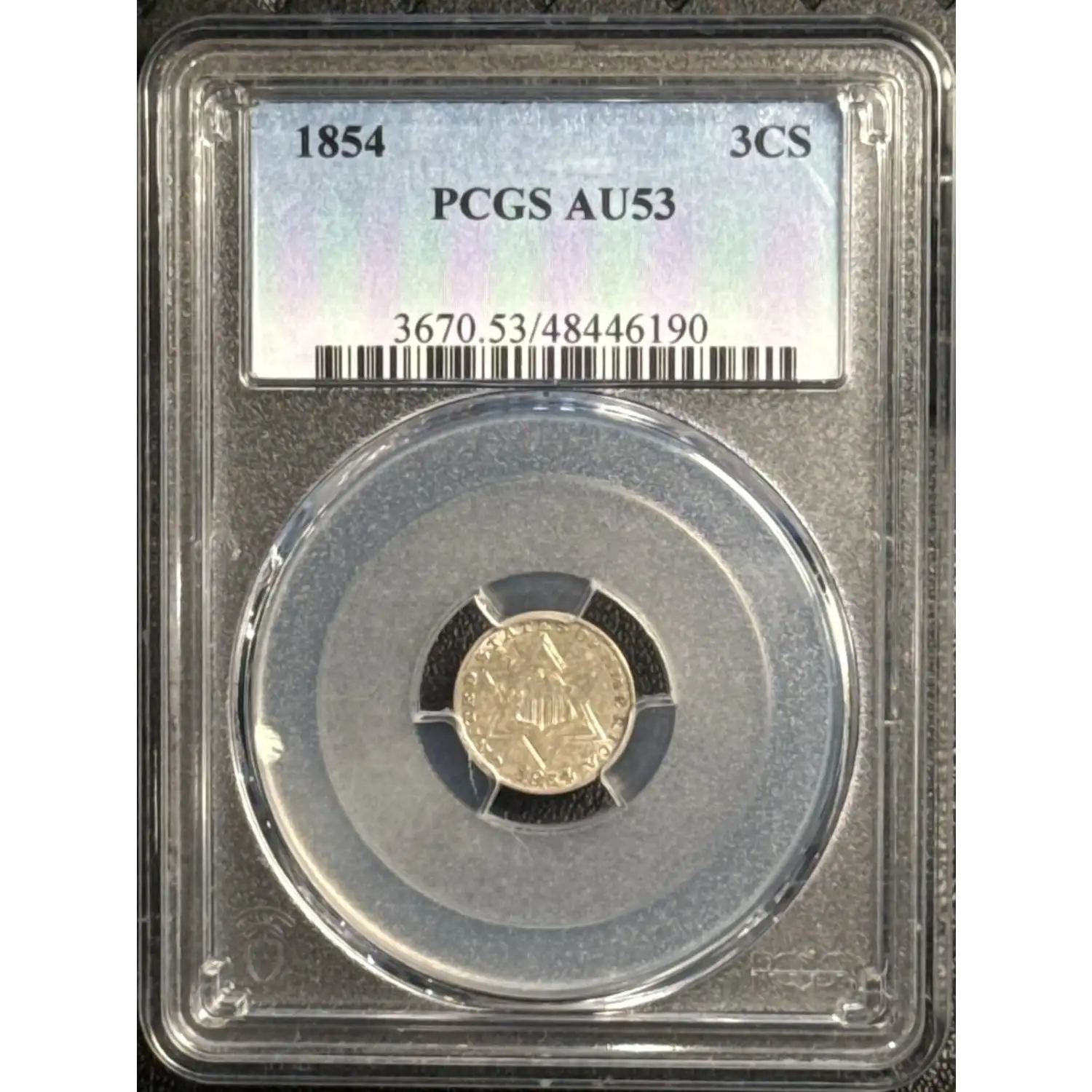 1854 Silver Three Cent Piece - Trime PCGS AU-53