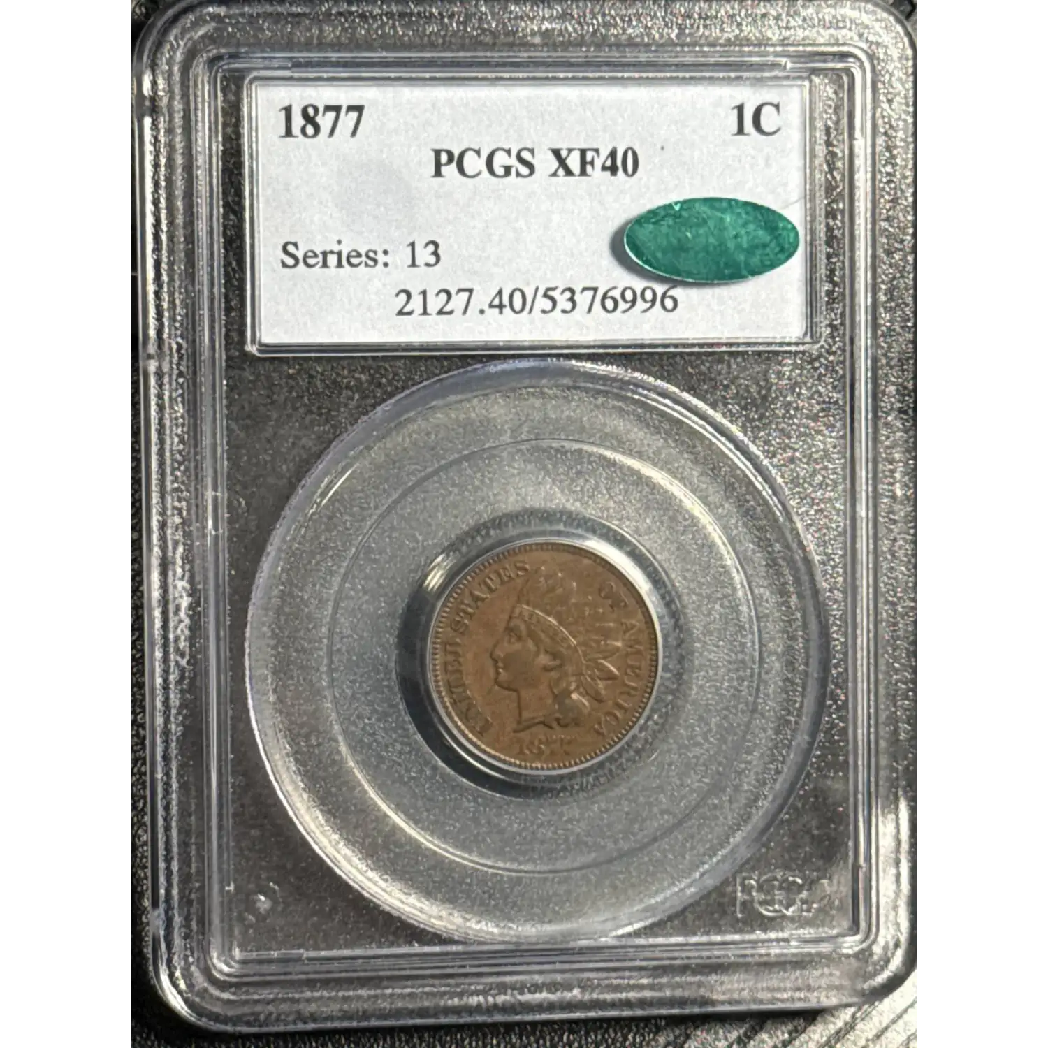 1877 Indian Cent PCGS XF-40 BN KEY DATE LOOKS AU+ CAC