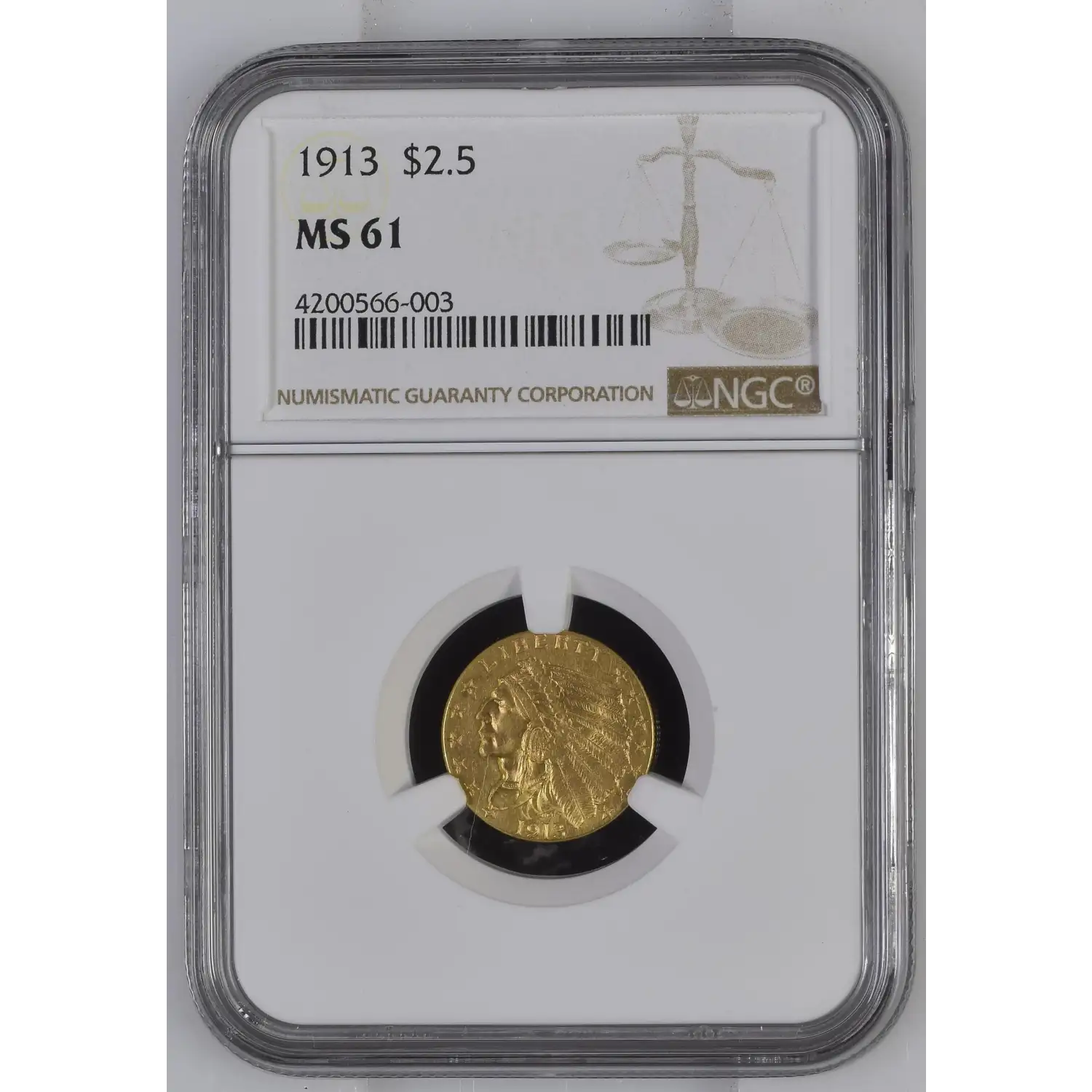 1913 Gold Quarter Eagles $2 1/2 Indian Head NGC MS-61