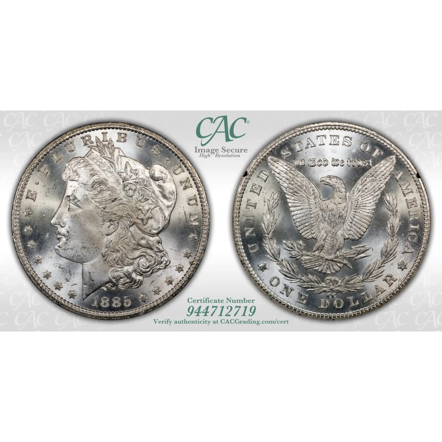 1885-CC-CC Morgan Silver Dollar CACG MS 65 GSA Treasure CAC