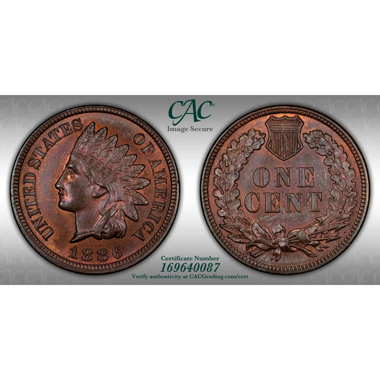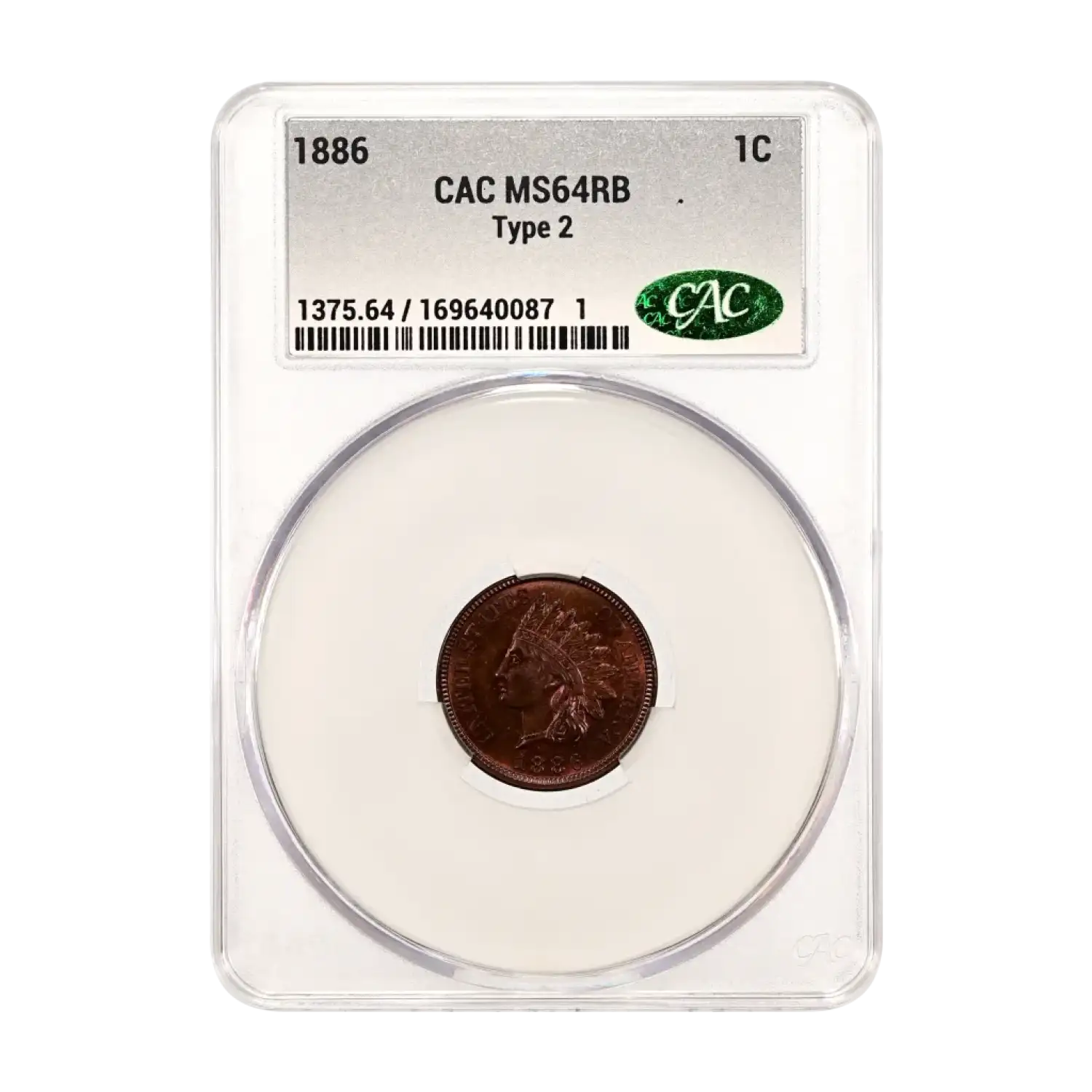 1886 Indian Cent CACG MS 64 RB Type 2 CAC