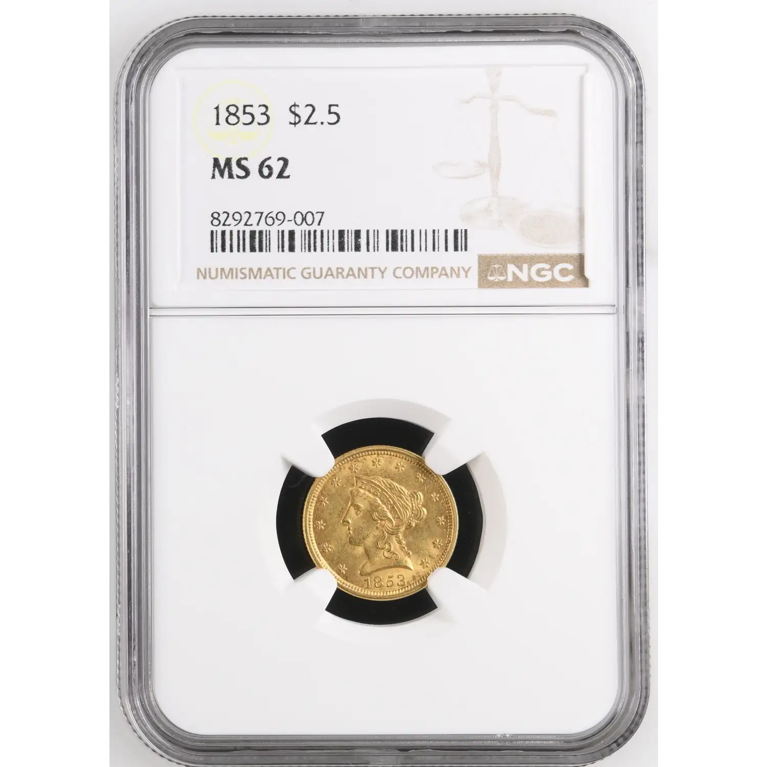 1853 $2.50 Gold Liberty Head Quarter Eagle NGC MS-62