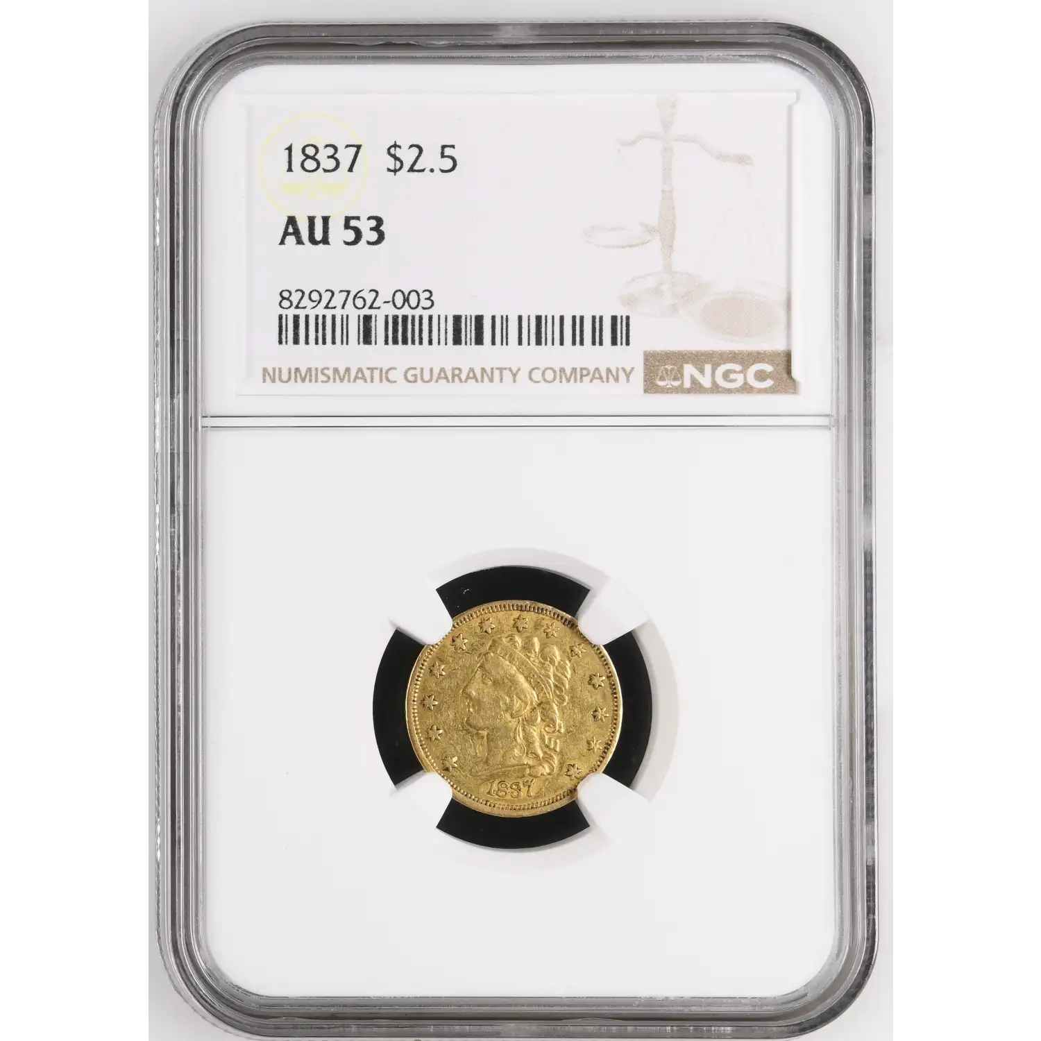 1837 Gold Quarter Eagles Classic Head, No Motto on Reverse NGC AU-53
