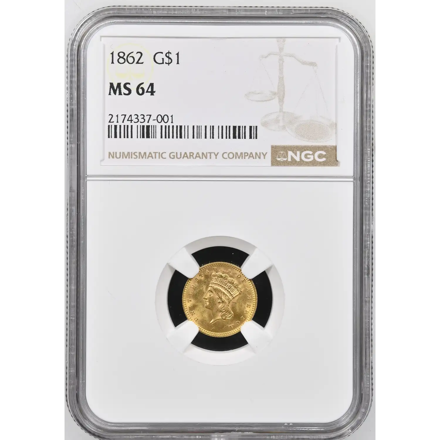 1862 Indian Princess Large Head Gold Dollar NGC MS-64