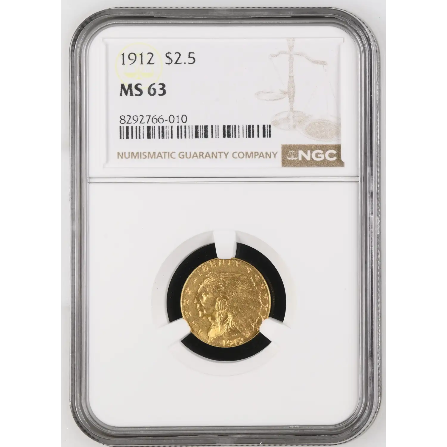 1912 Gold Quarter Eagles $2 1/2 Indian Head NGC MS-63