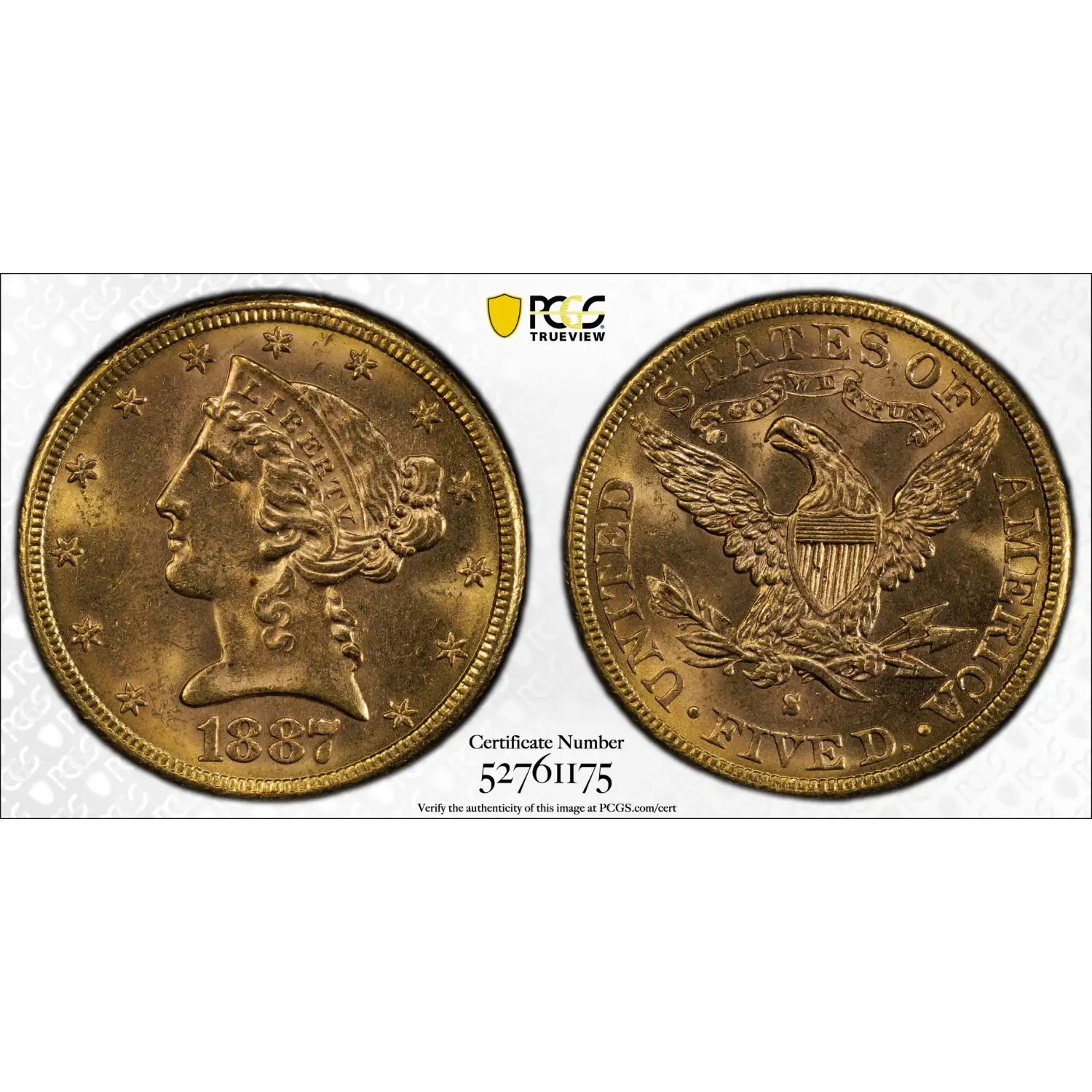 1887-S Gold Half Eagles Liberty Head PCGS MS-64