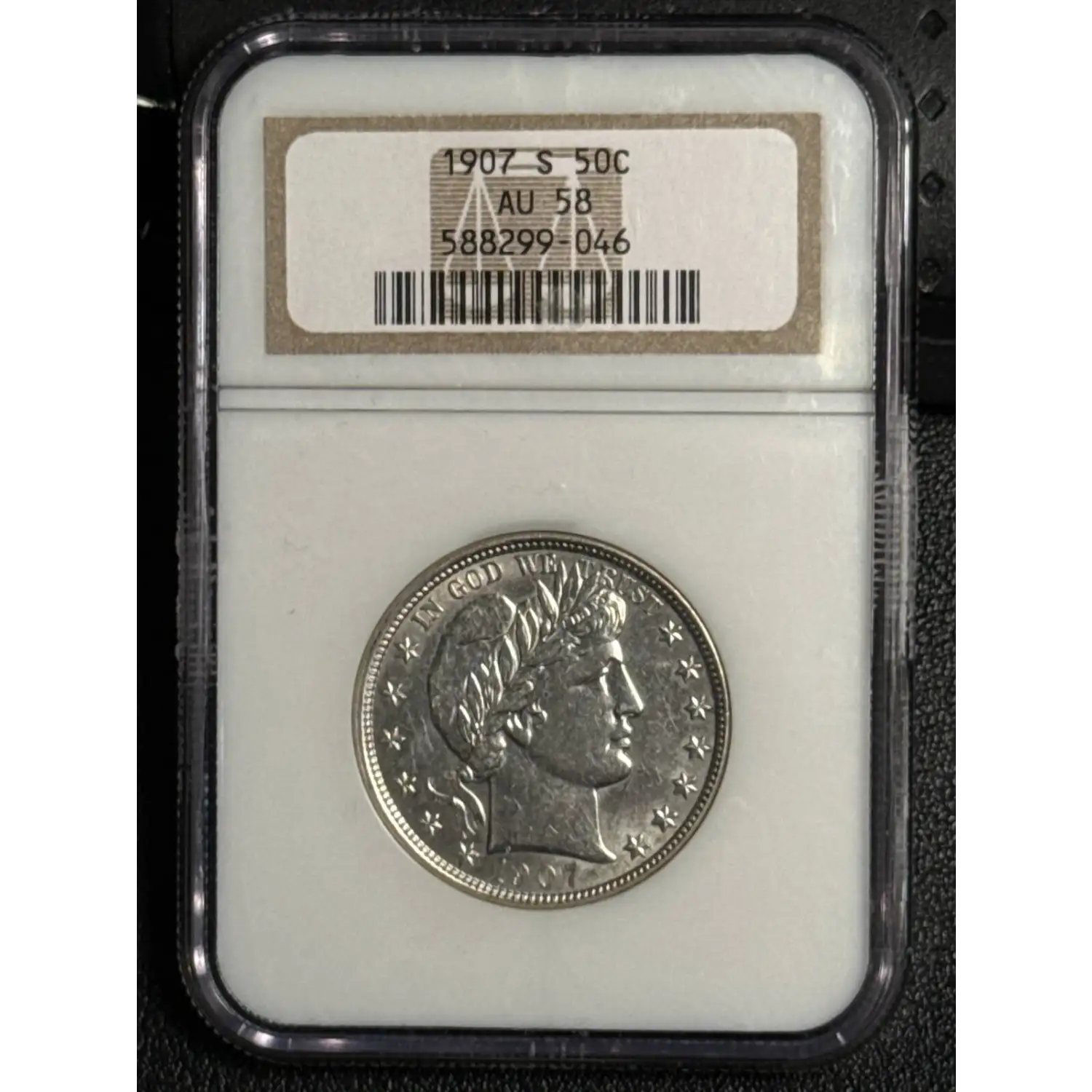 1907-S Barber Half Dollar NGC AU-58 BLAST WHITE