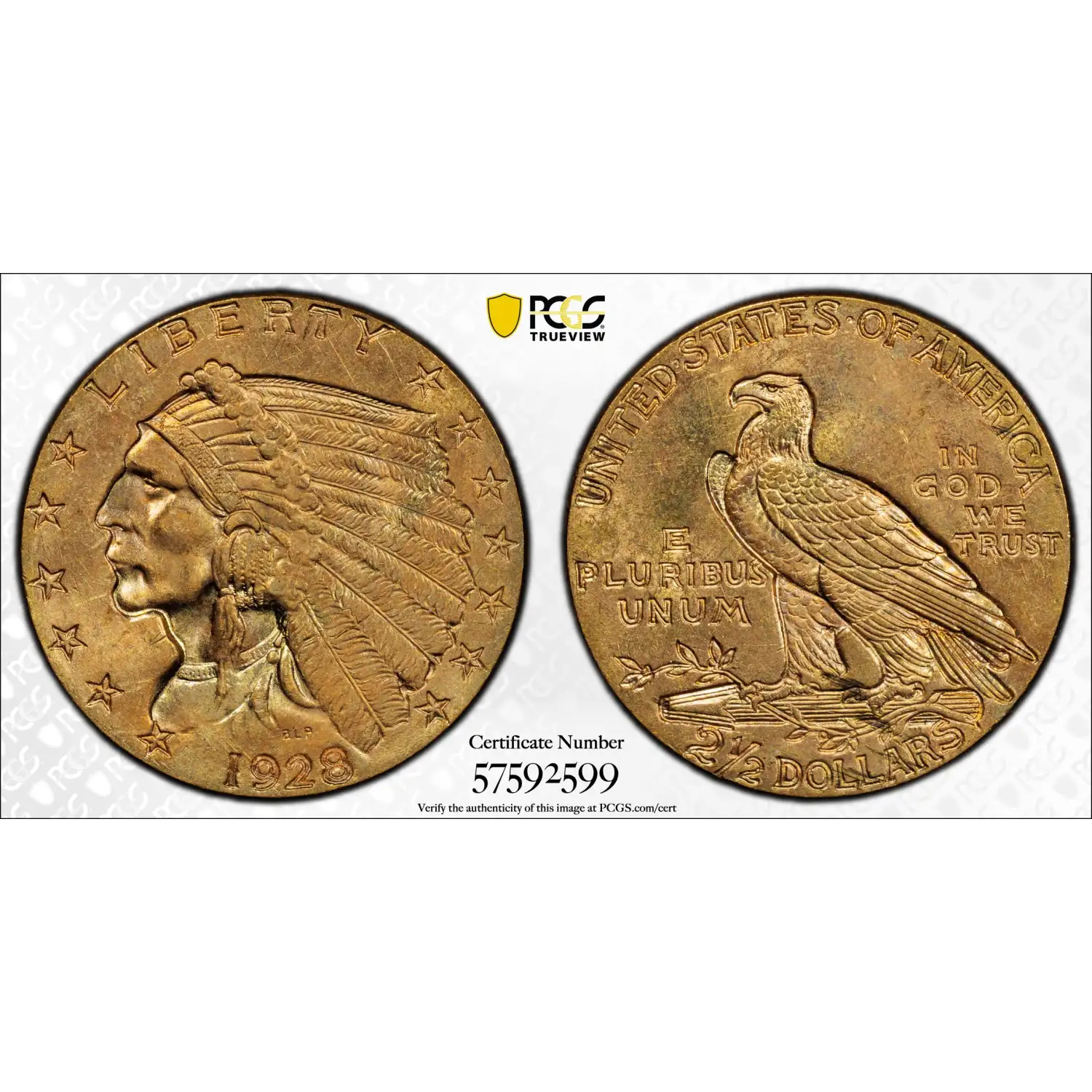1928 Gold Quarter Eagles $2 1/2 Indian Head PCGS MS-65