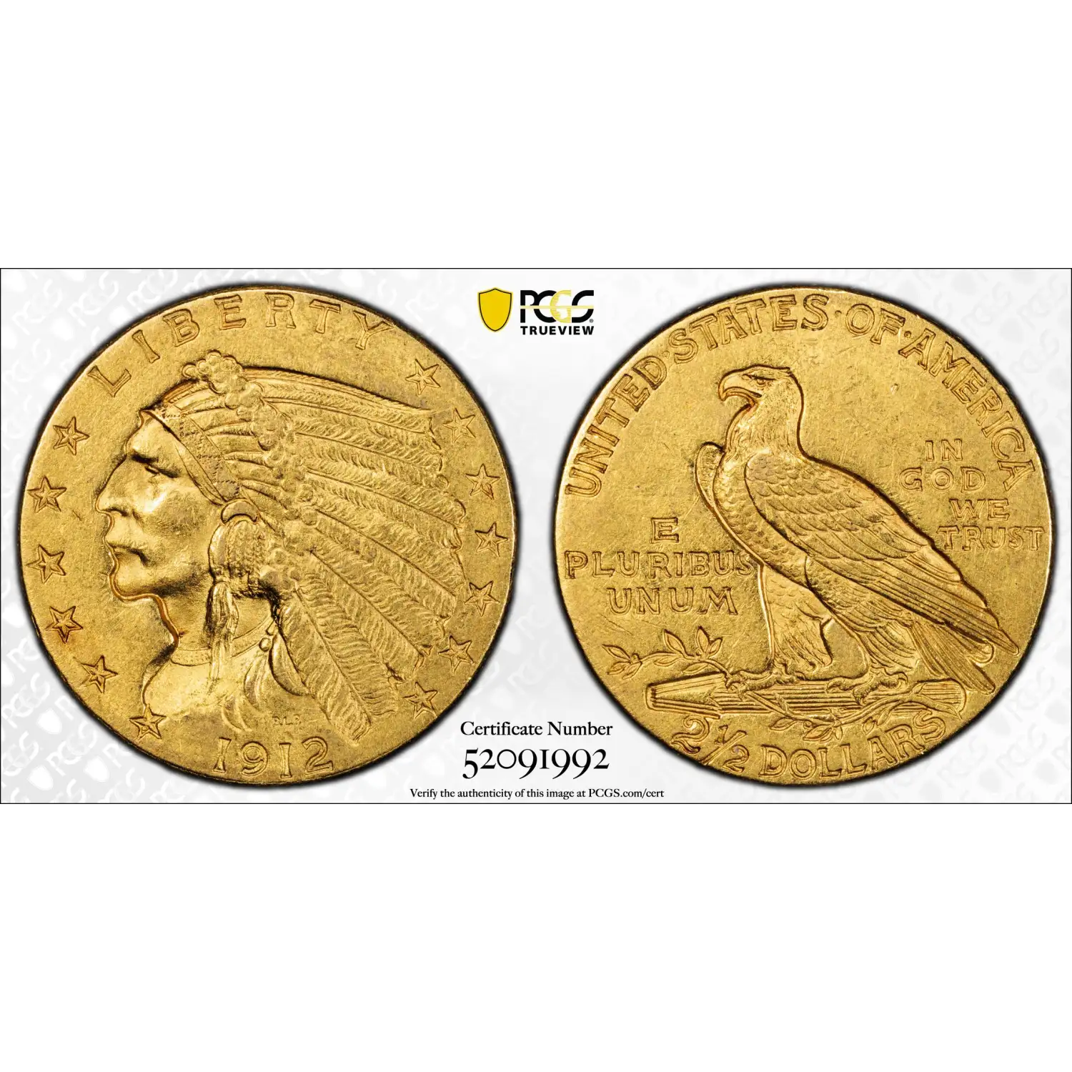 1912 Gold Quarter Eagles $2 1/2 Indian Head PCGS AU-58