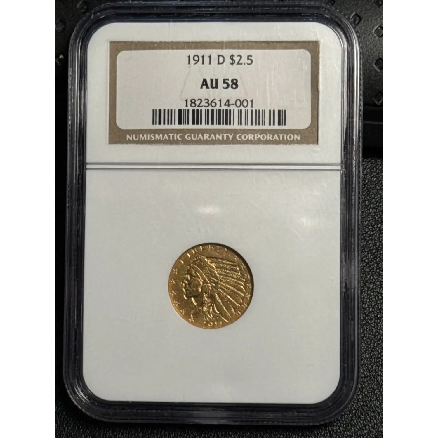 1911-D Gold Quarter Eagles $2 1/2 Indian Head NGC AU-58 STRONG D