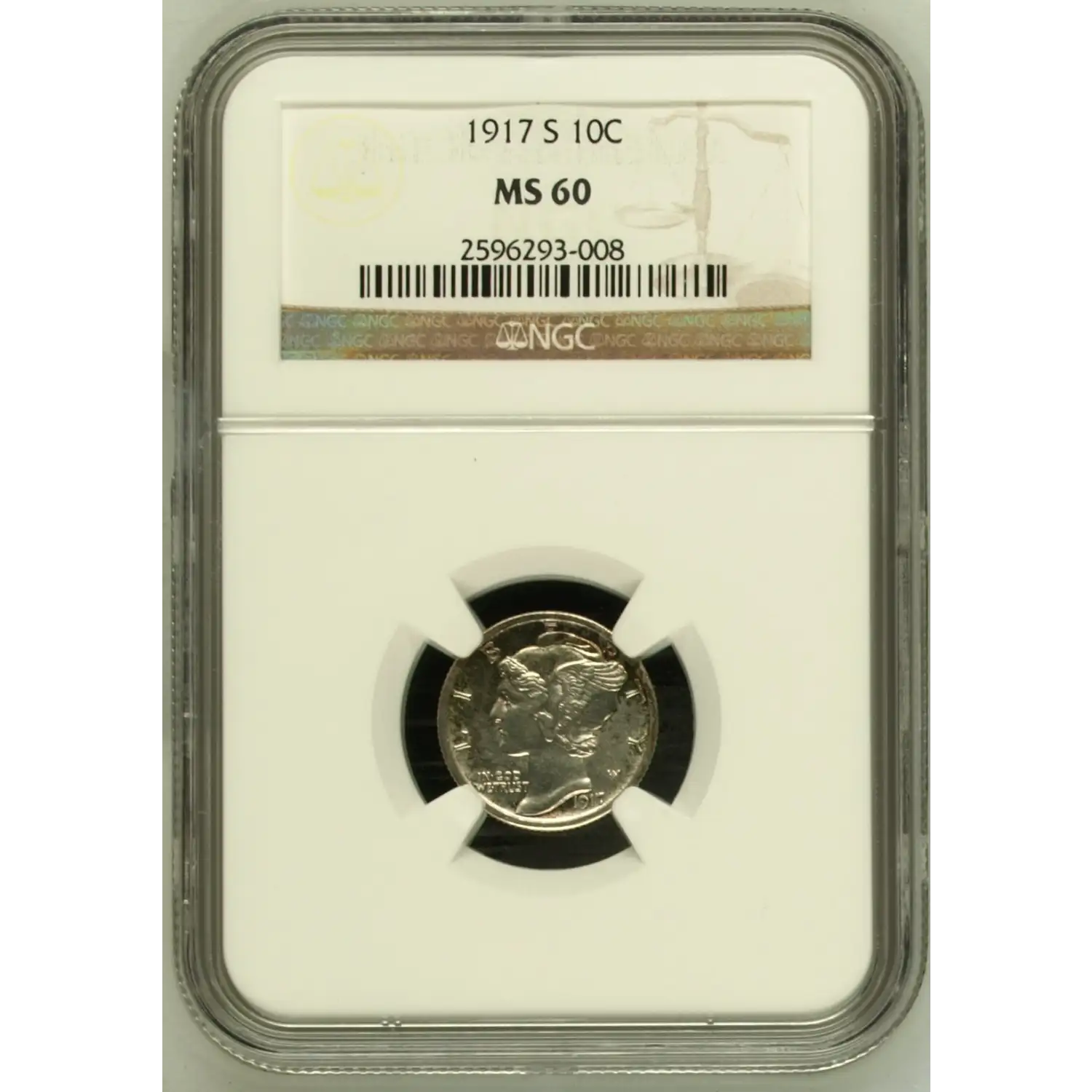1917-S Mercury Dime NGC MS-60 PERIPHERAL COLOR