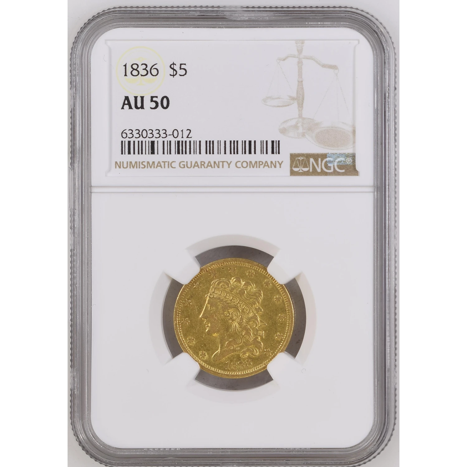 1836 Gold Half Eagles Classic Head NGC AU-50