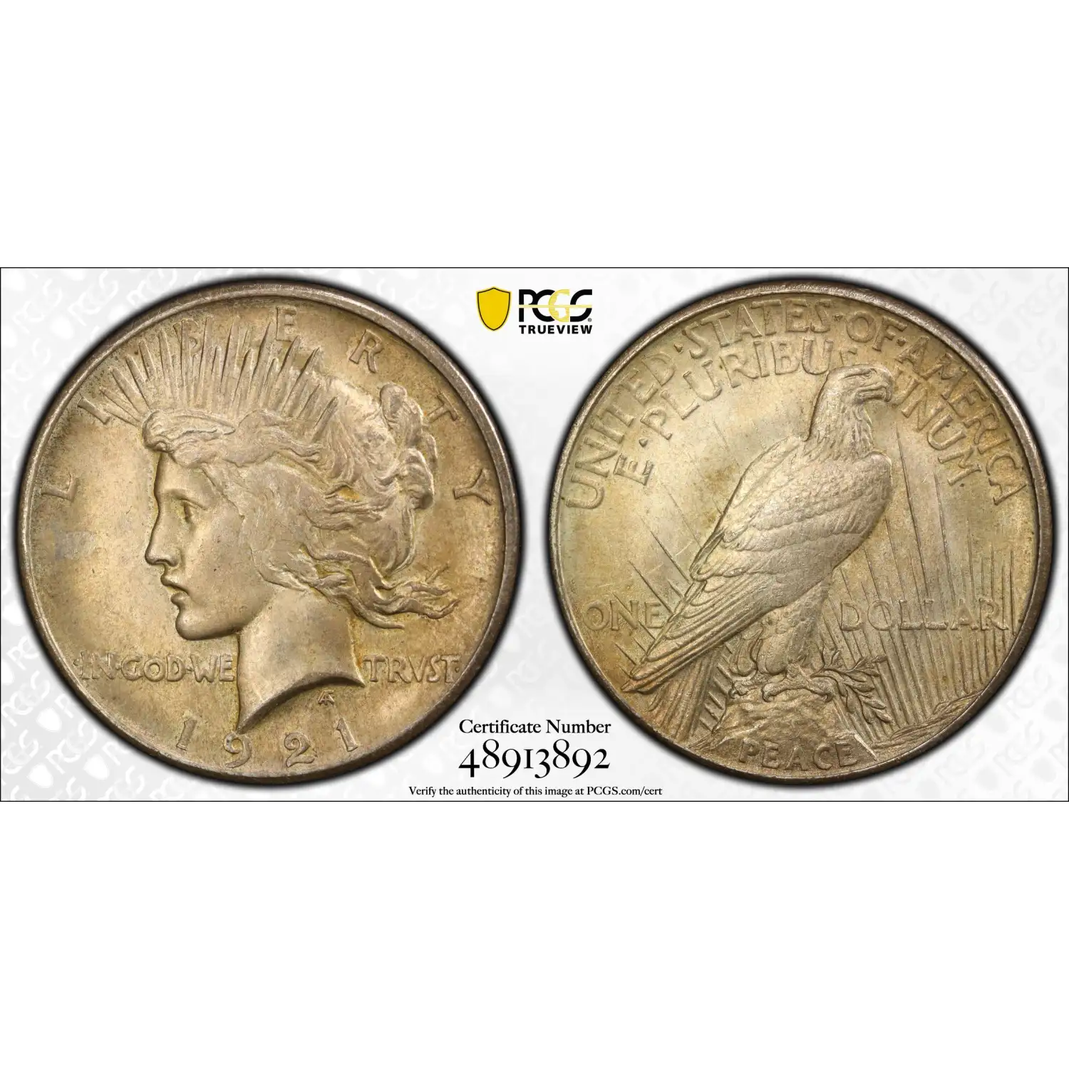 1921 Peace Silver Dollar PCGS MS-63 TONED Peace