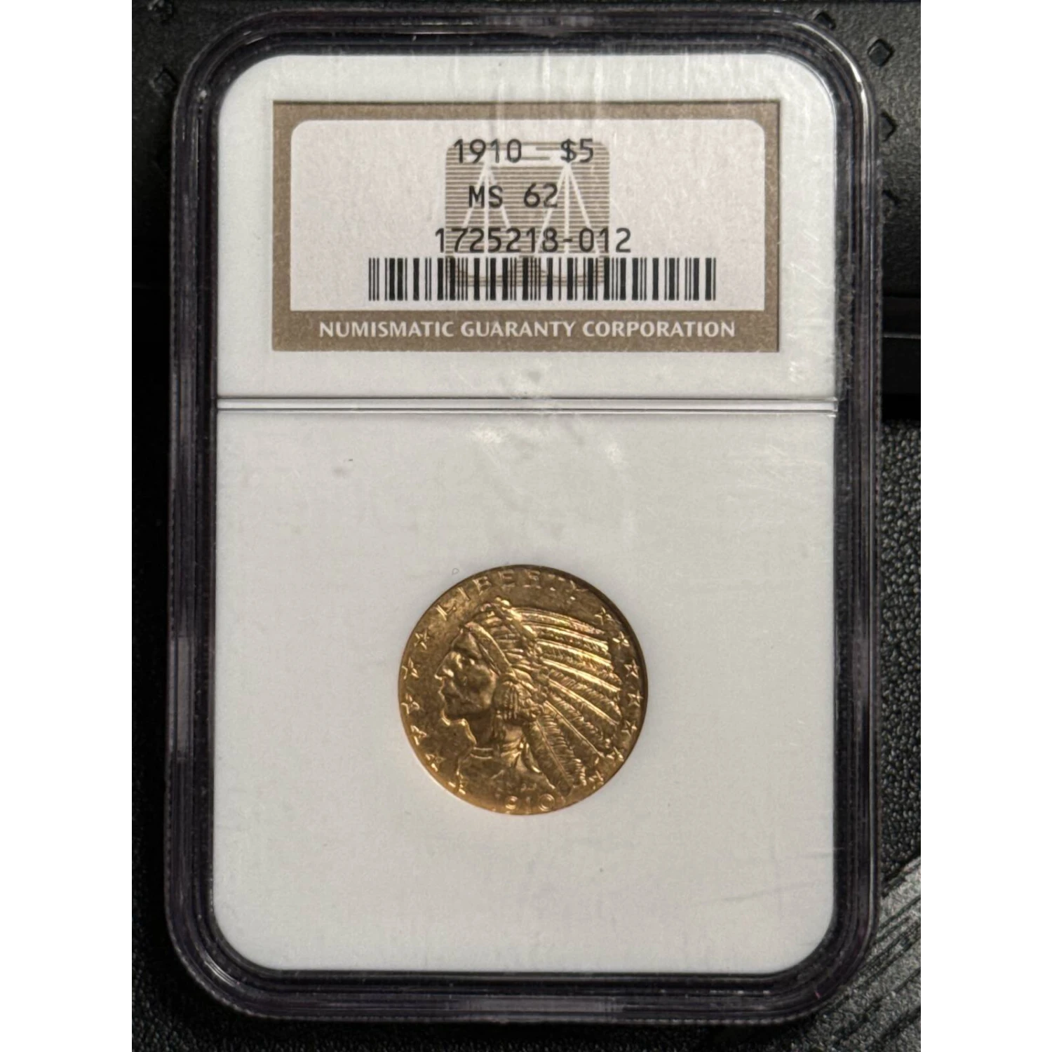 1910 Gold Half Eagles $5 Indian Head NGC MS-62