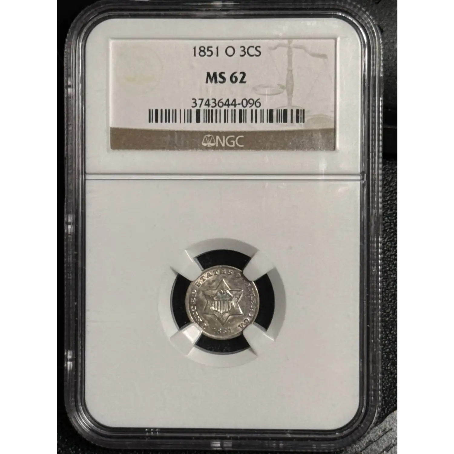 1851-O Silver Three Cent Piece - Trime NGC MS-62