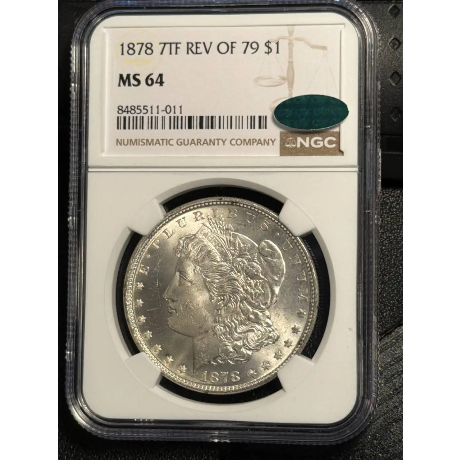 1878 Morgan Silver Dollar NGC MS-64 7TF REV OF 79 PQ CAC