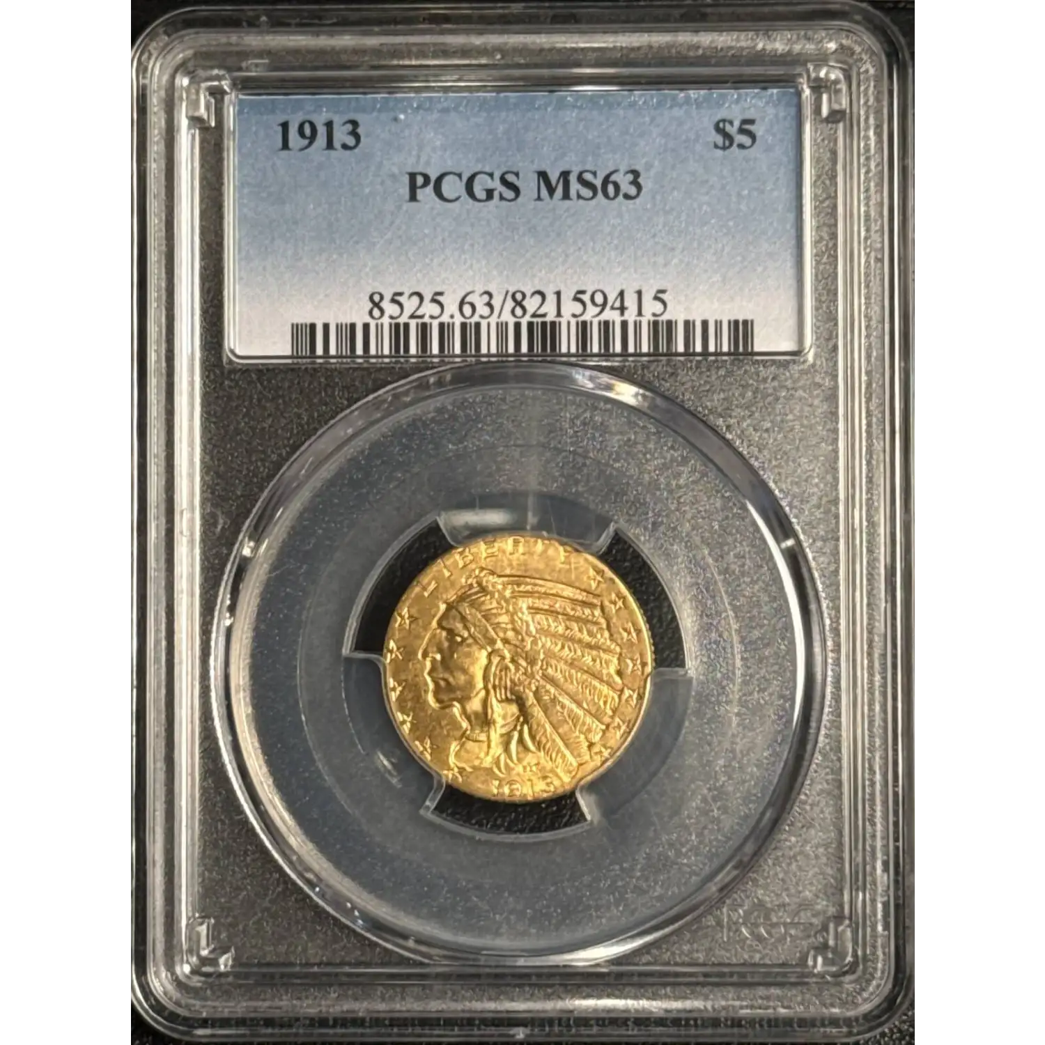 1913 Gold Half Eagles $5 Indian Head PCGS MS-63