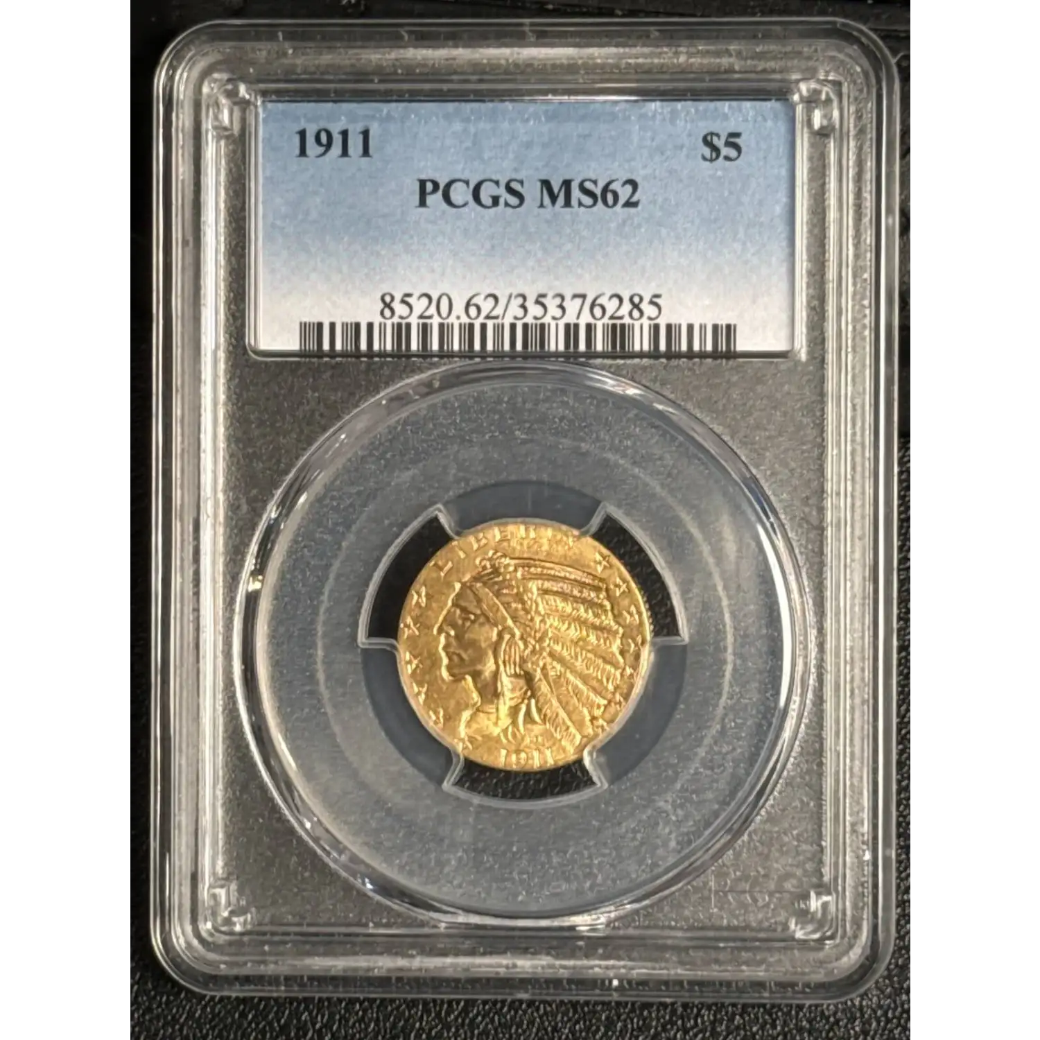 1911 Gold Half Eagles $5 Indian Head PCGS MS-62
