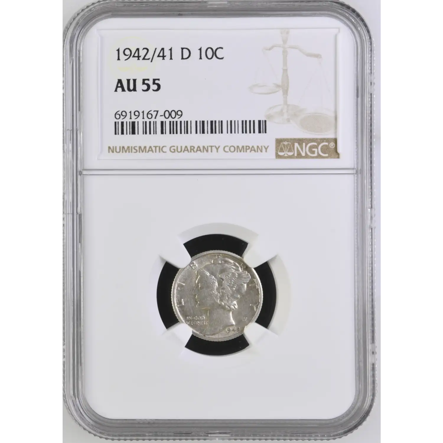 Read more about1942/1-D Mercury Dime PCGS AU-55