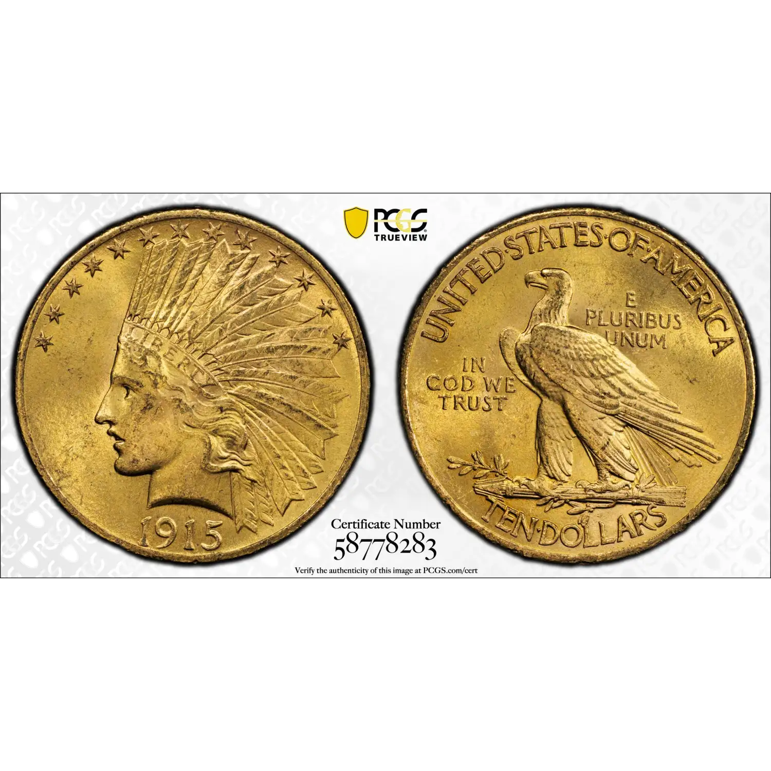 1915 Gold Eagles $10 Indian Head PCGS MS-63+