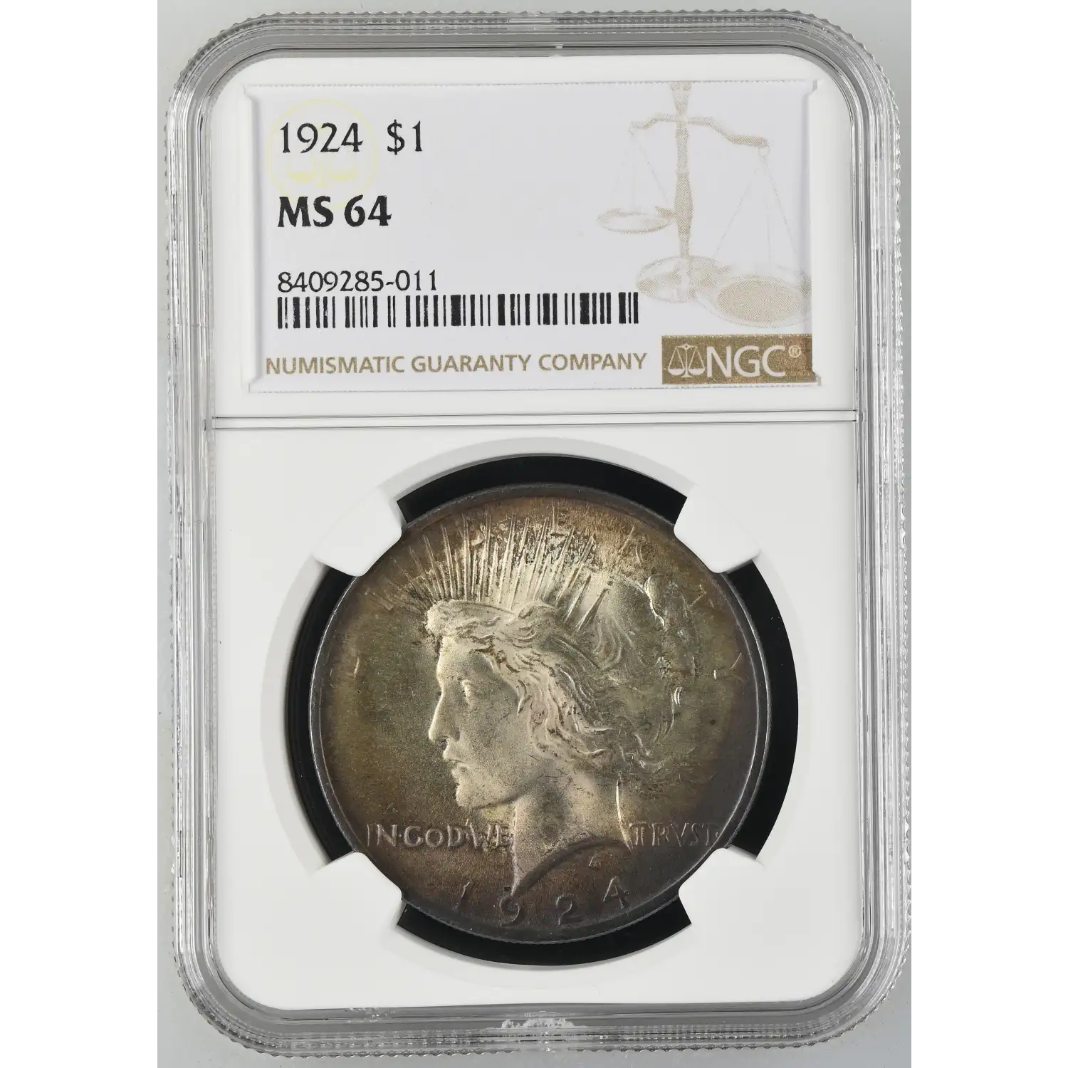 1924 Peace Silver Dollar NGC MS-64 TONED