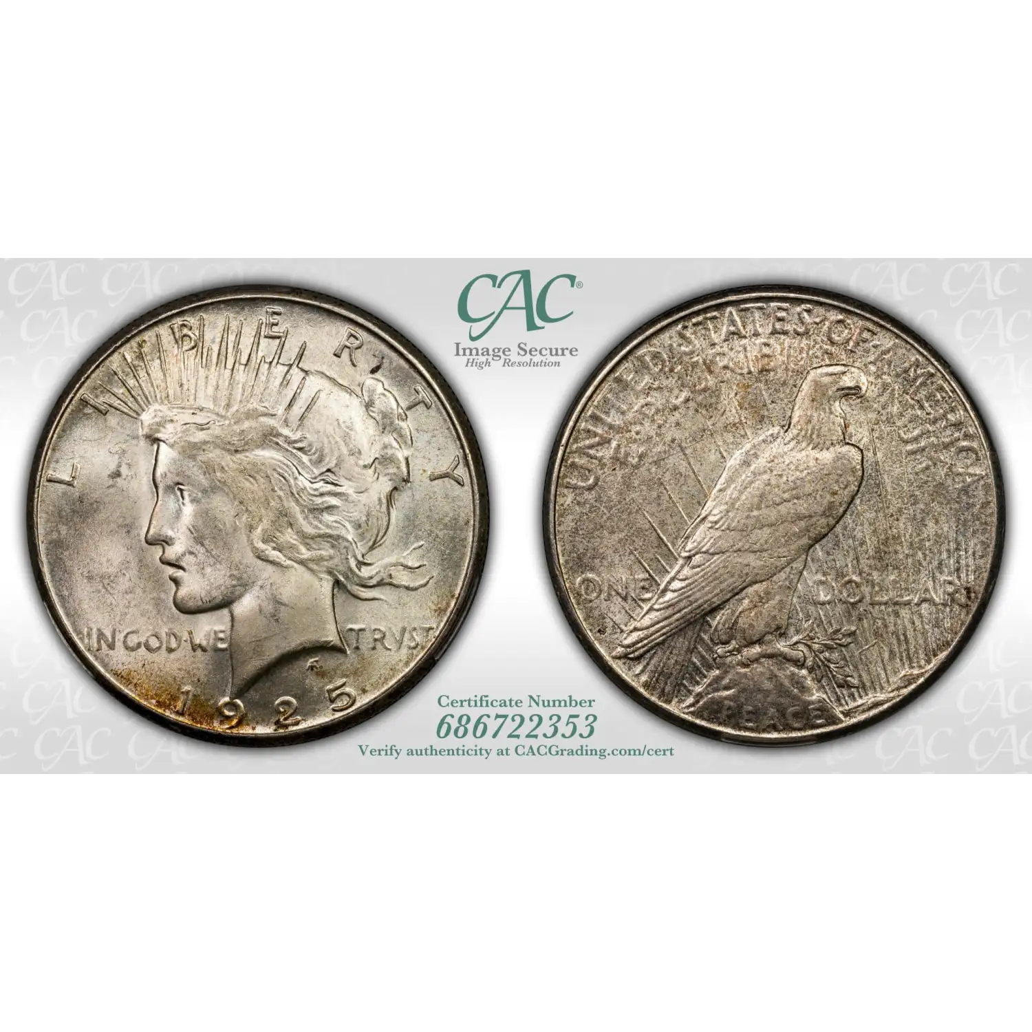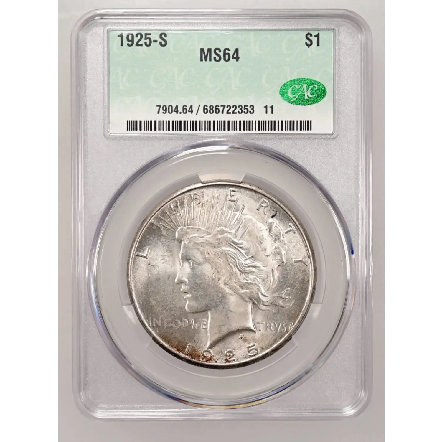 1925-S-S Peace Silver Dollar CACG MS 64 CAC
