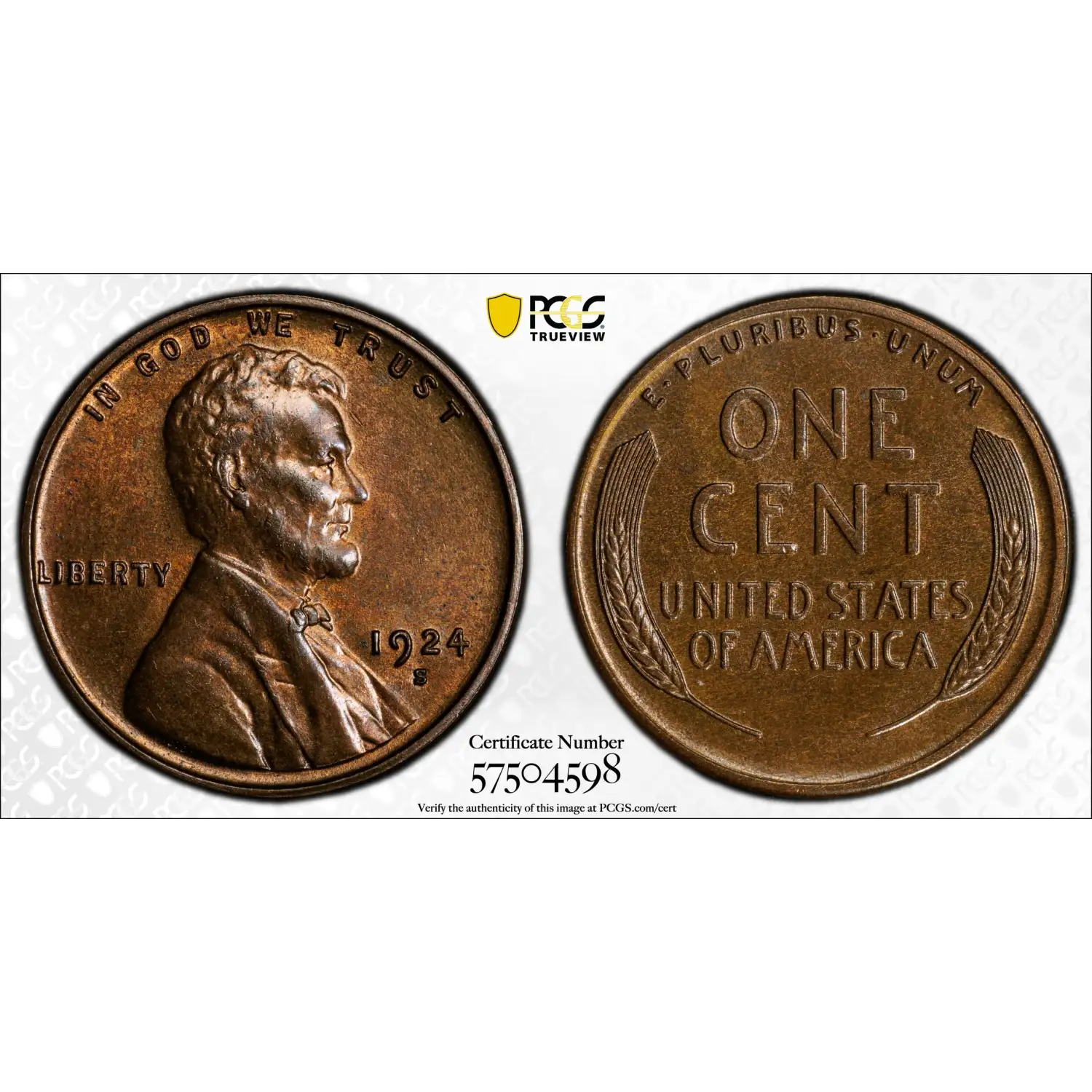 1924-S Lincoln Wheat Cent PCGS MS-63 BN CAC