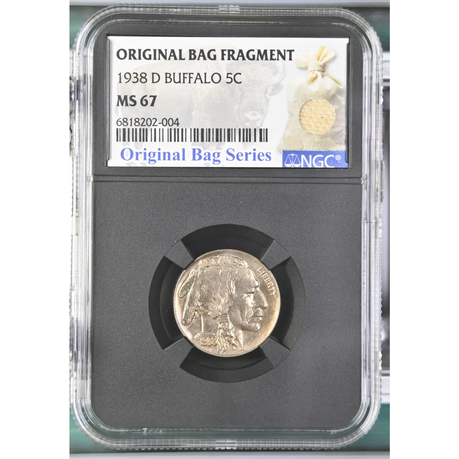1938-D Buffalo Nickel NGC MS-67 ORIGINAL BAG FRAGMENT