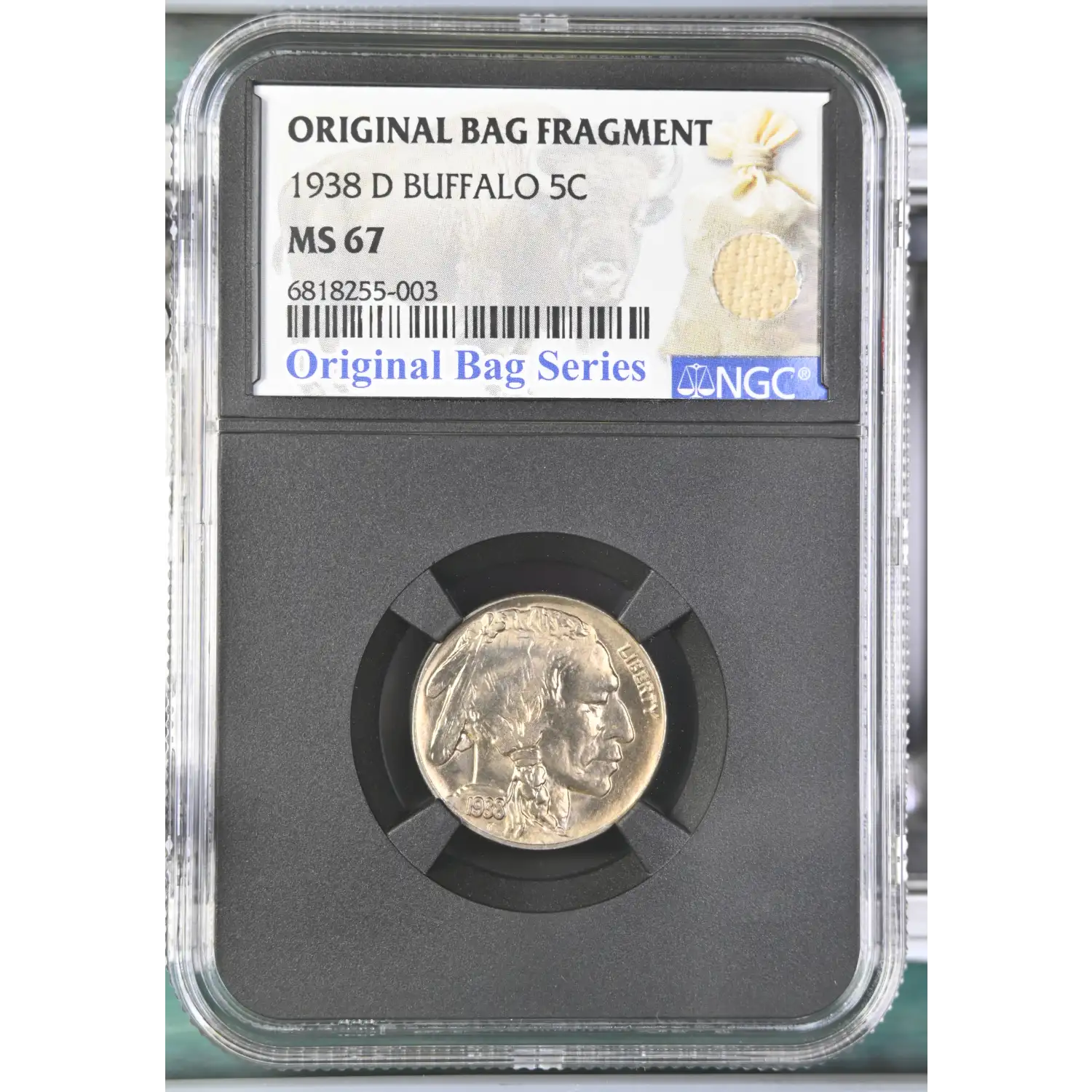 1938-D Buffalo Nickel NGC MS-67 ORIGINAL BAG FRAGMENT