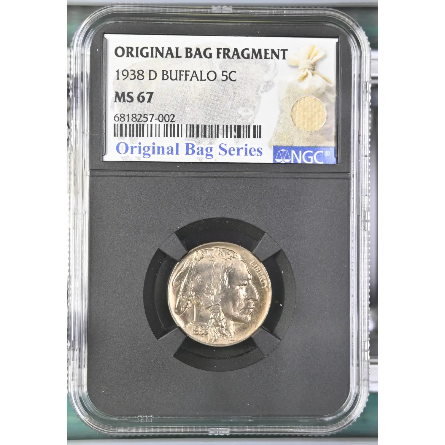 1938-D Buffalo Nickel NGC MS-67 ORIGINAL BAG FRAGMENT