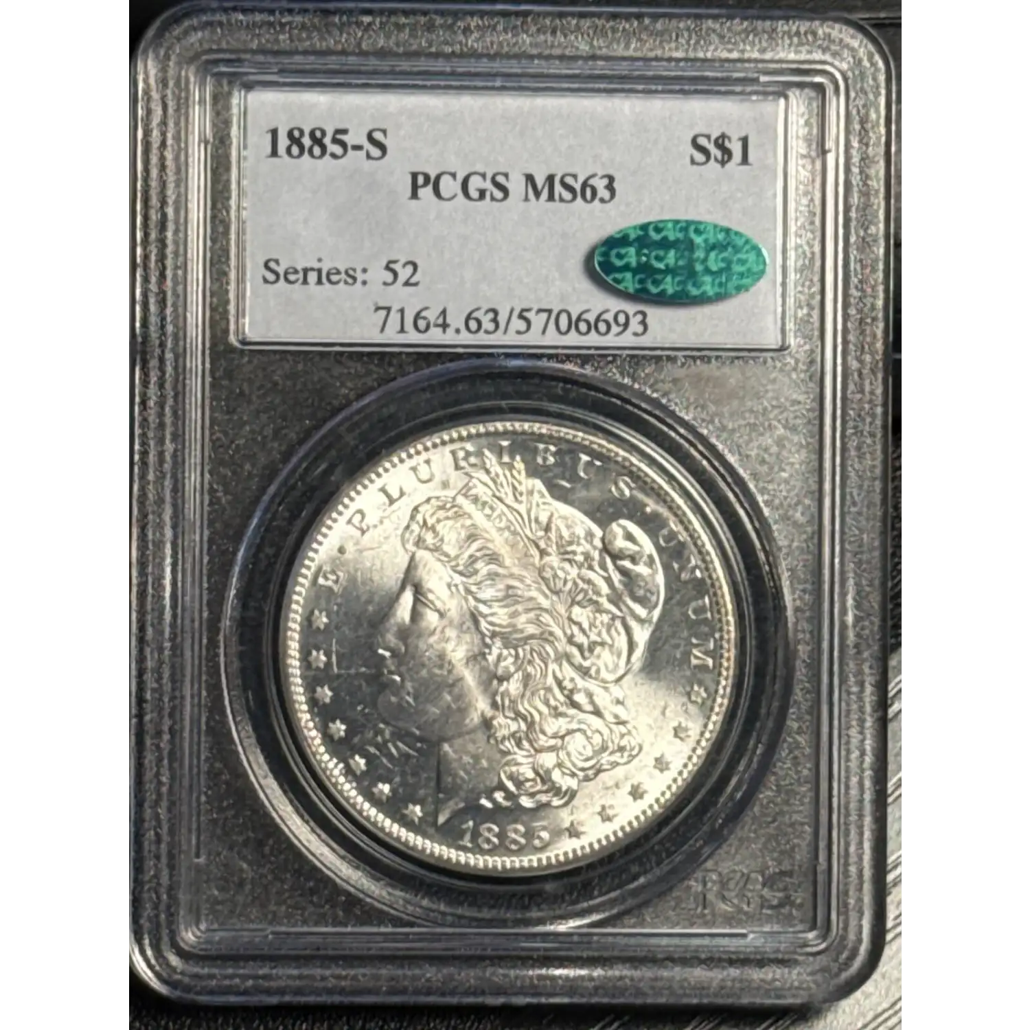 1885-S Morgan Silver Dollar PCGS MS-63 BLAST WHITE SEMI PL CAC
