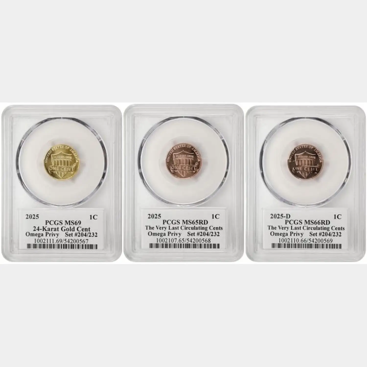 Read more about2025 Lincoln Memorial Cent PCGS MS-69 69CAC, 65 CAC, 66 Omega Privy 3 COIN SET CAC